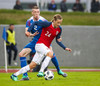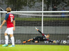 MARK!! Norðmenn eru komnir yfir og það gerir Björn Maars Johansen með frábæru skoti!! Kemur sér í góða skotstöðu í teignum og þrumar boltanum í netið! Frederik virtist vera með puttana í boltanum en það dugði ekki til.