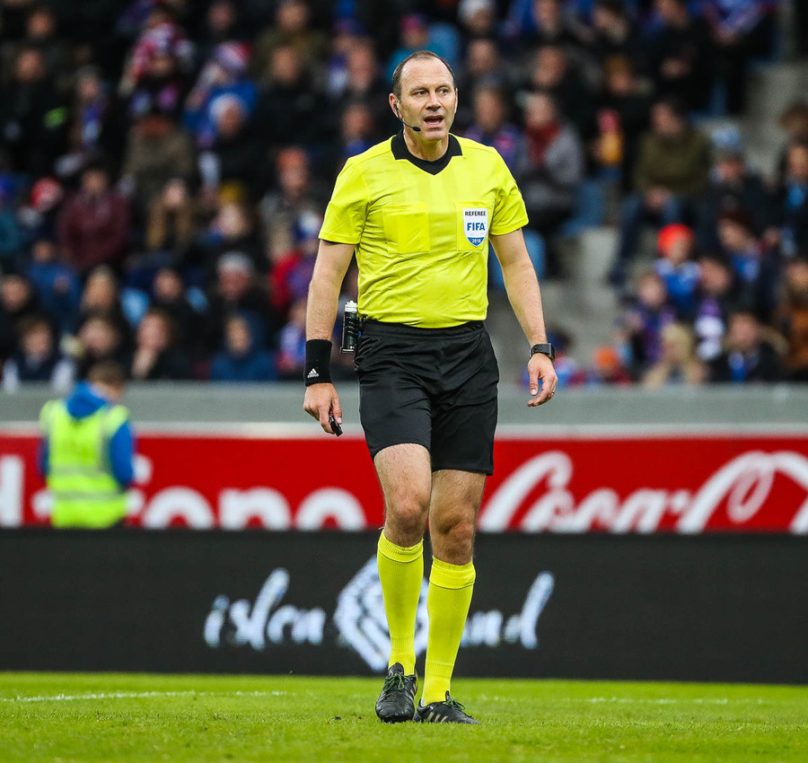 Dómari dagsins í dag er Jonas Eriksson og mun hann dæma sinn síðasta leik á ferlinum í kvöld. Hann þarf þó ekki að hafa áhyggjur af því að eiga ekki lengur fyrir salti í grautinn, enda er hann þekktur sem milljónamæringurinn í heimalandinu Svíþjóð.