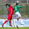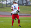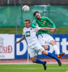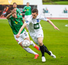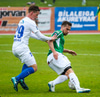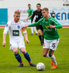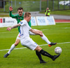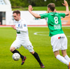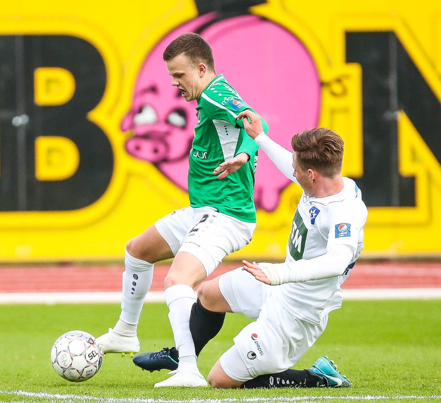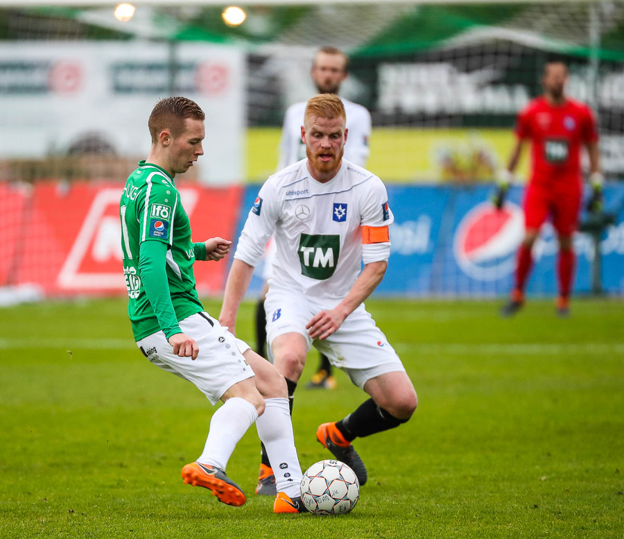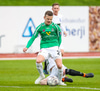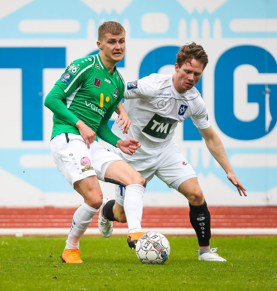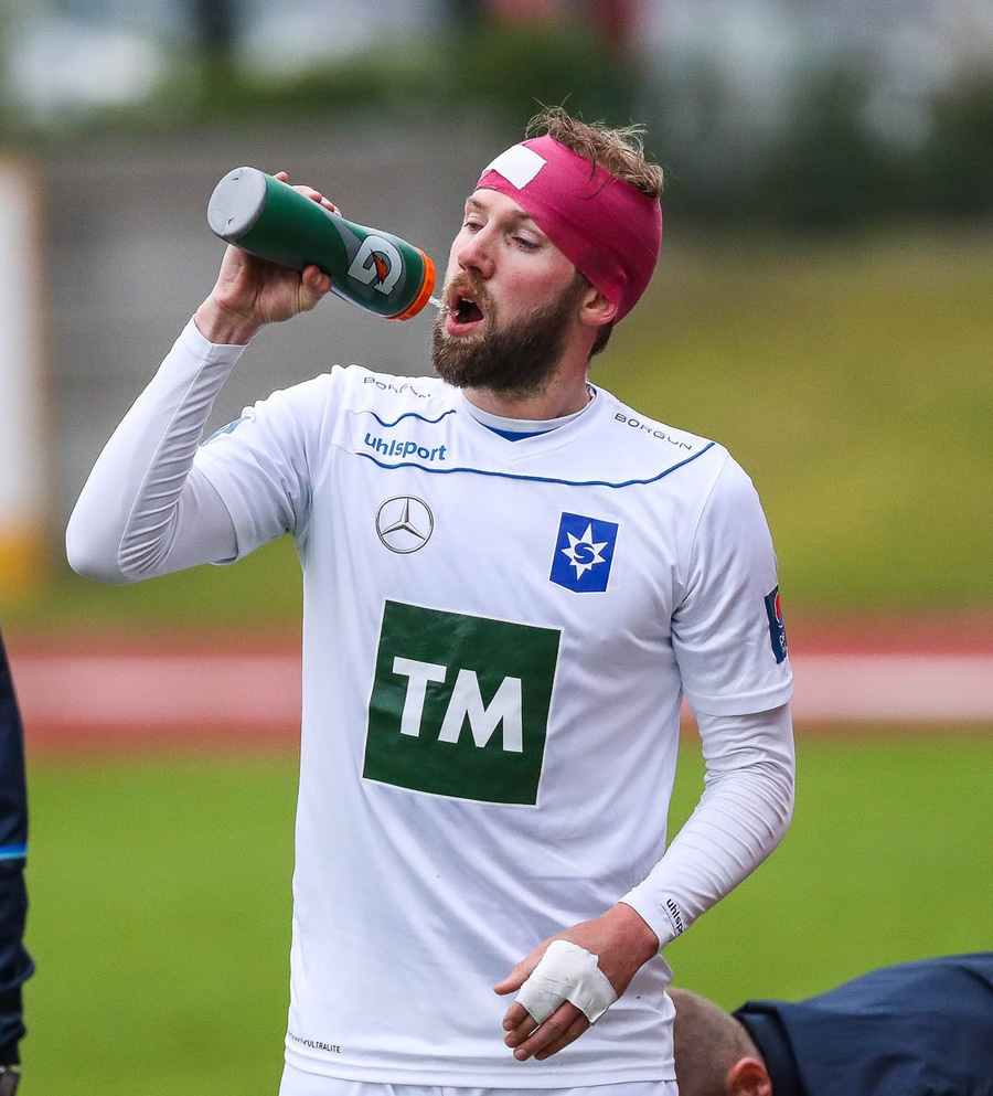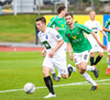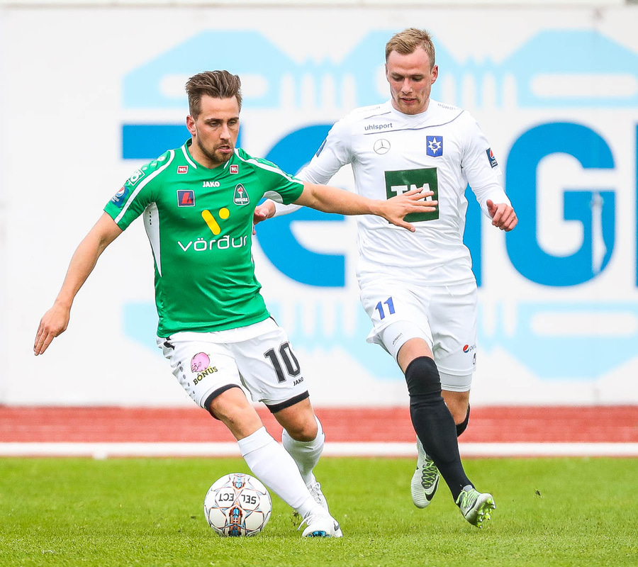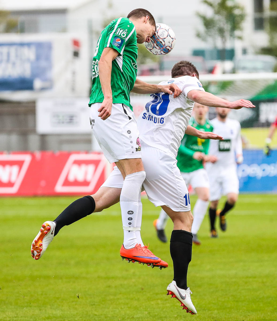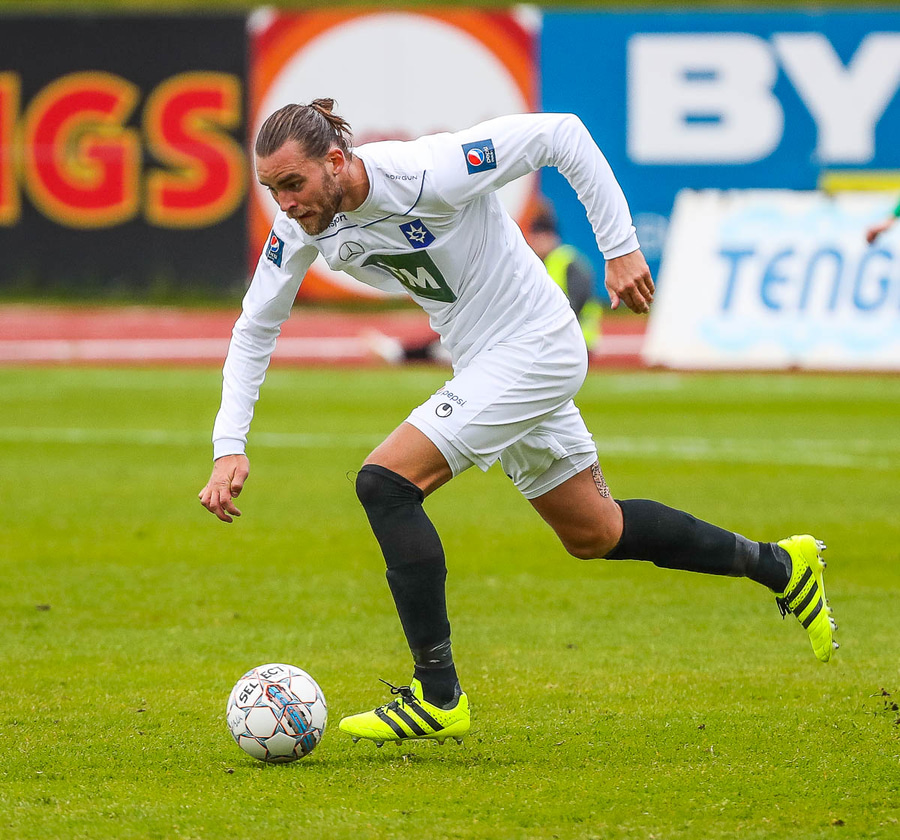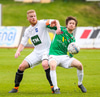 Þórarinn Ingi brýtur hér á Arnþóri Ara úti á hægri kantinum þegar hann er að komast framhjá honum, hárrétt spjald.