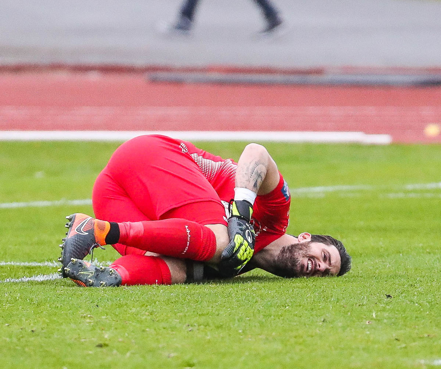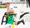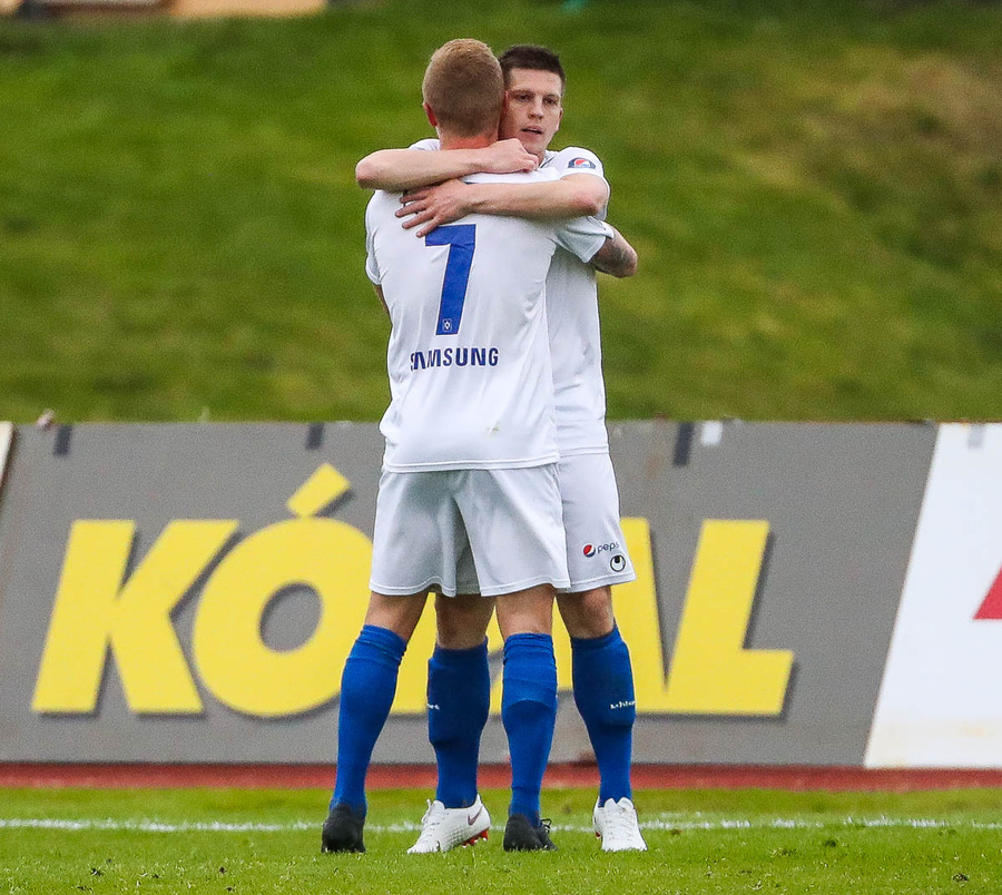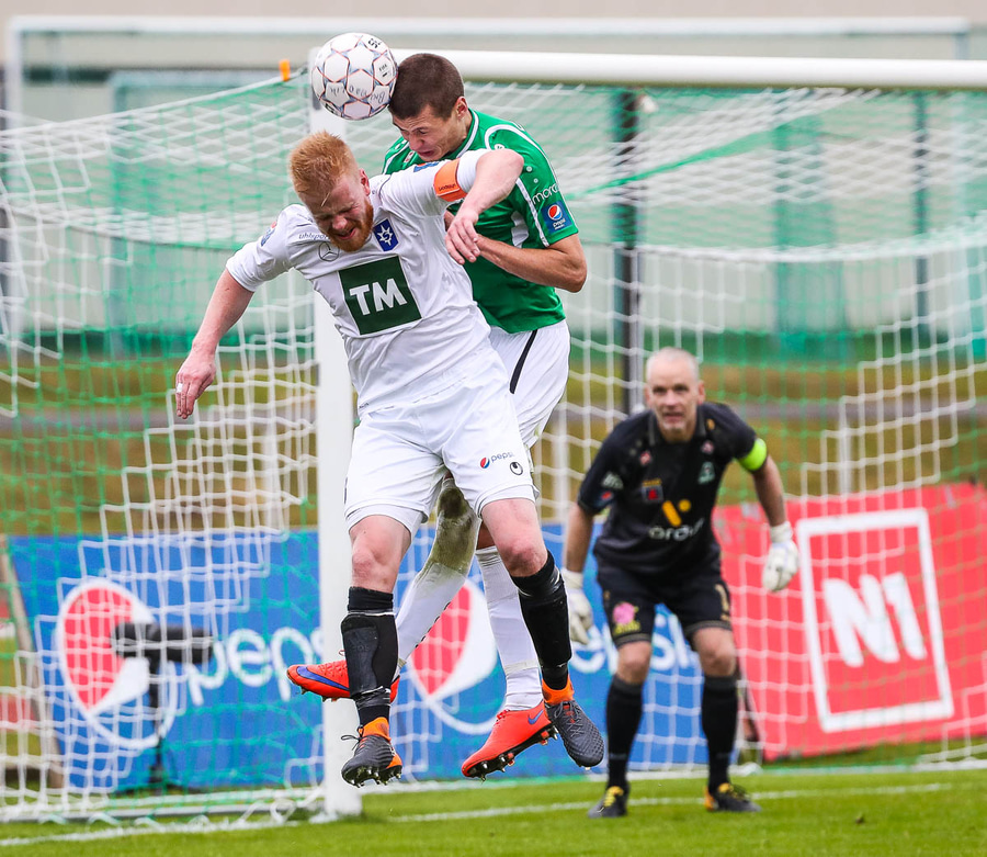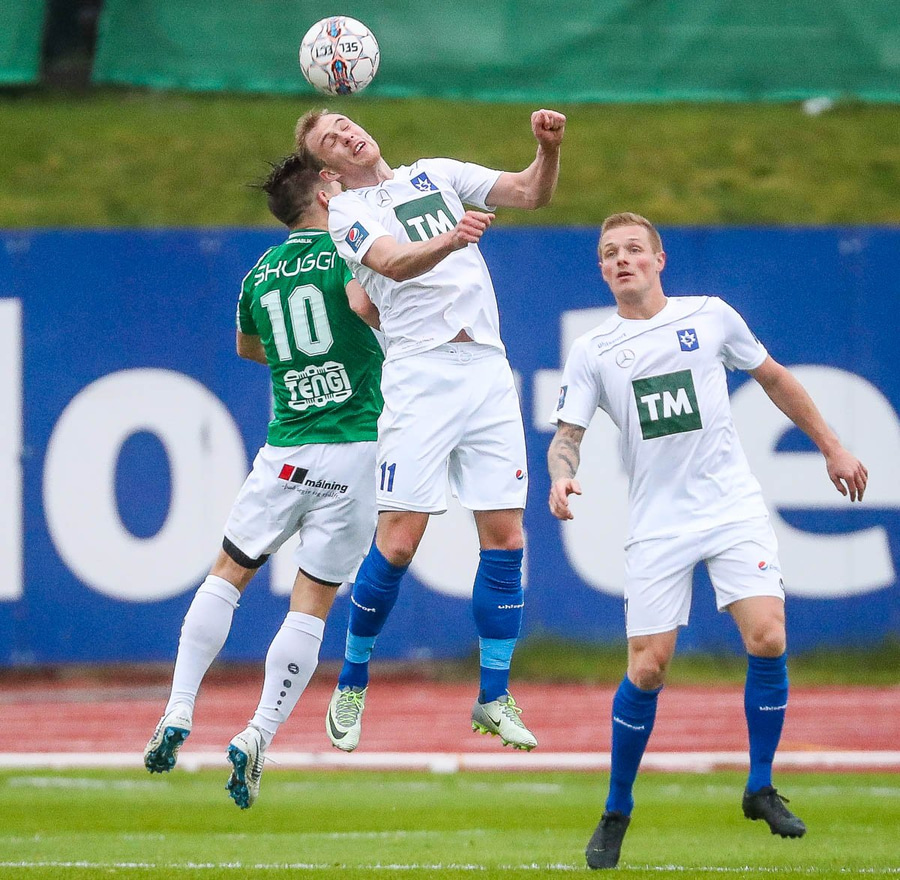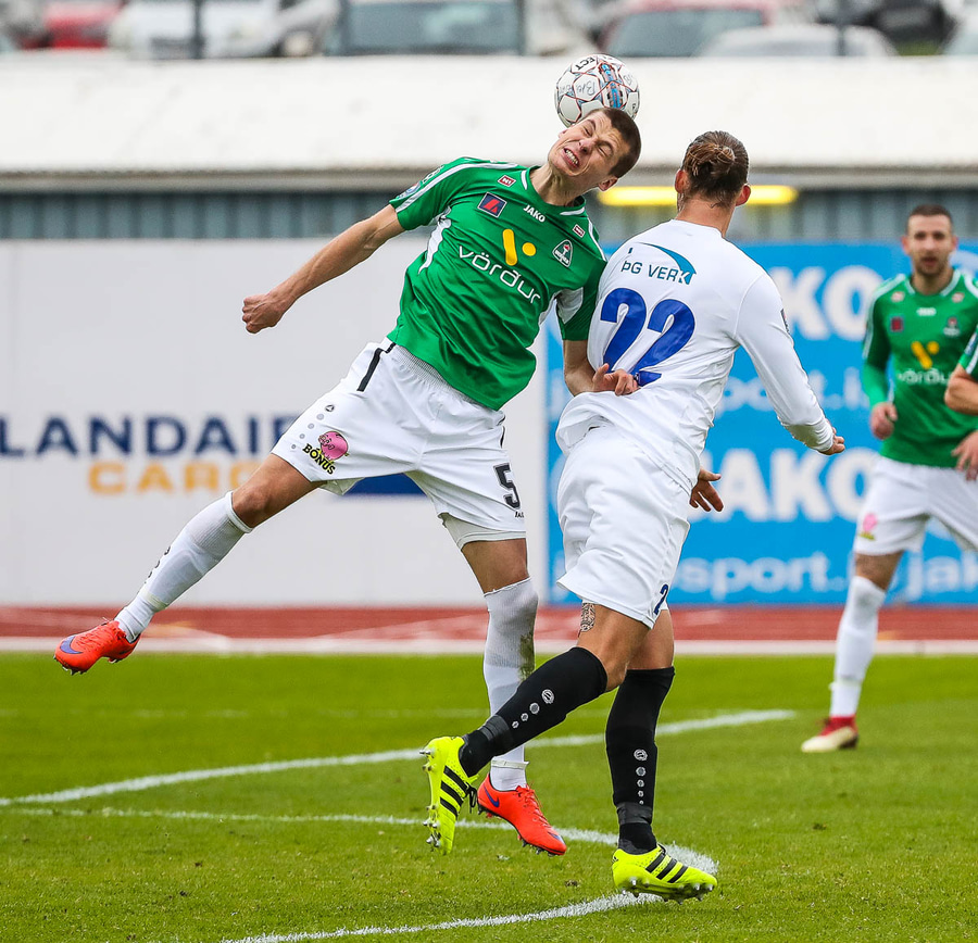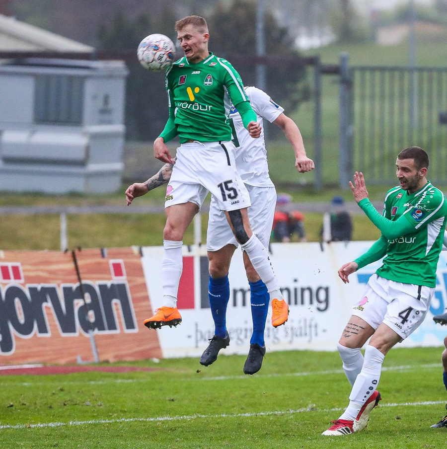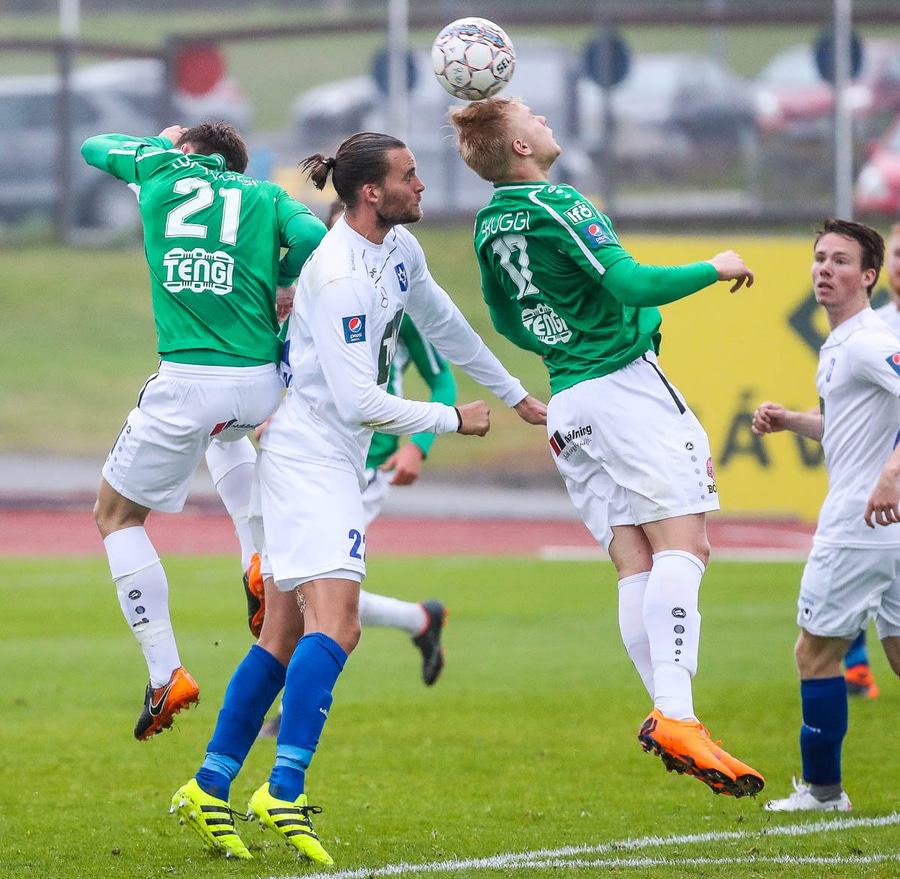 Viktor missir hann klaufalega í baráttunni við Gauja sem kemur svo með krossinn yfir á Guðmund Stein en Damir nær að skalla hann í horn.