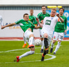 Fín aukaspyrna frá Hilmari inná teiginn en Guðmundur Steinn nær ekki að stýra skalla sínum á markið.
