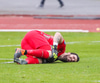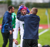 Gauji lenti eitthvað illa hérna áðan í baráttunni við Ella og er haltur, vonandi að hann geti haldið leik áfram í seinni hálfleik.