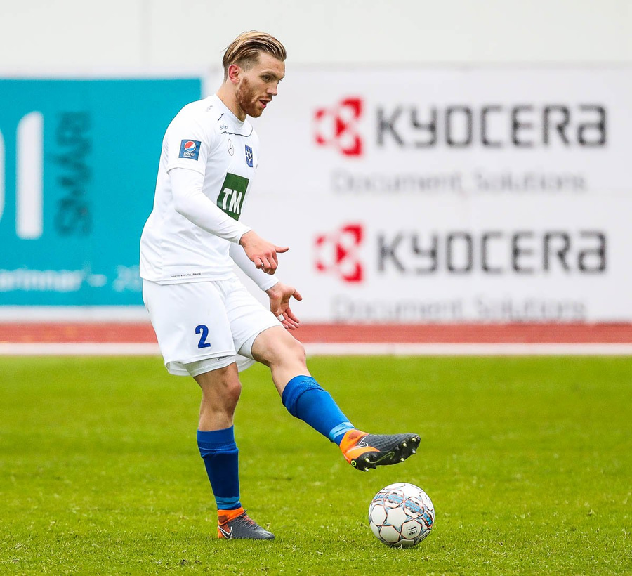 Ævar með gott hlaup og kemur með fyrirgjöfina en Damir kemst fyrir og boltinn í hornspyrnu.