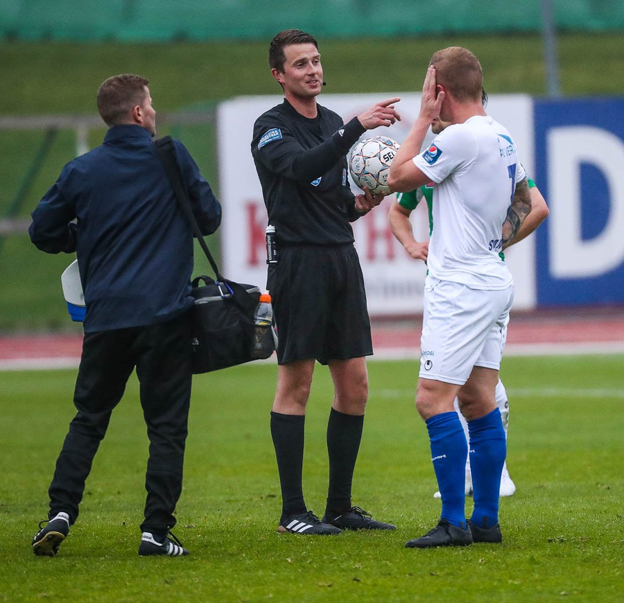 Vilhjálmur flautar hér til hálfleiks og staðan er 0-0 í tíðindalitlum fyrri hálfleik.