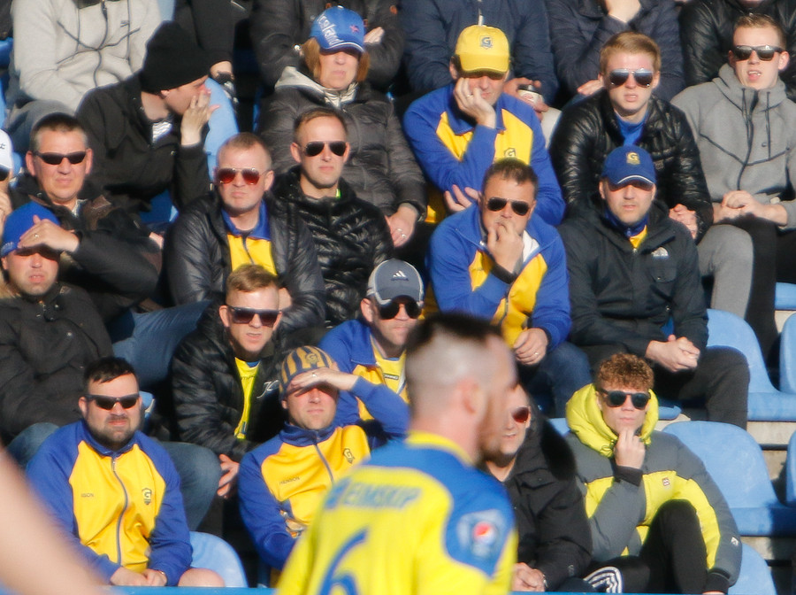 Stúkan hlær. Þóroddur reynir 180 gráðu stefnubreytingu til að fylgja leiknum en rennur á rassinn. Gaman að því