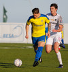 Þóroddur með góða varnarvinnu Aron að reyna koma boltanum út á Gunnar sem er í góðri stöðu úti á væng en Þóroddur varð fyrir og sóknin rennur út í sandinn.