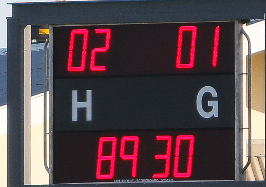 Will fær boltann úti á hægri væng leikur aðeins inn á völlinn og á fast vinstri fótar skot með jörðinni. Gunnar Þ hoppar yfir boltann og hann steinliggur í fjærhorninu.