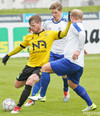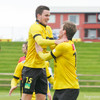ARNAR MÁR! Steinar með flotta fyrirgjöf en skallinn frá Arnari beint á Helga í markinu.