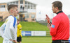 Jói Kalli búinn að láta aðstoðardómarann heyra það nokkrum sinnum og Jóhann fékk nóg. Jói reydnar haft nokkuð til síns máls.