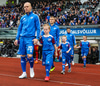 11 Parkinson sjúklingar eru komnir út á völlinn og verða þeir hliðin á leikmönnum íslenska landsliðsins á meðan þjóðsöngurinn verður leikinn.