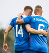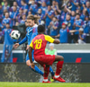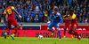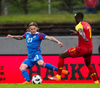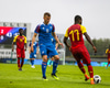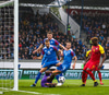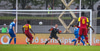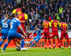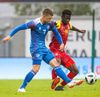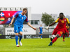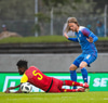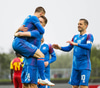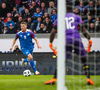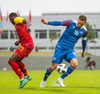 Alfreð Finnbogason fær boltann við markteigslínuna, nær skoti að marki sem Nichoals Opoku kemst fyrir og boltinn rúllar framhjá nærstönginni.