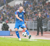 Birkir Bjarnason reynir að þræða boltann innfyrir á Björn Bergmann en sendingin of föst og boltinn aftur fyrir.