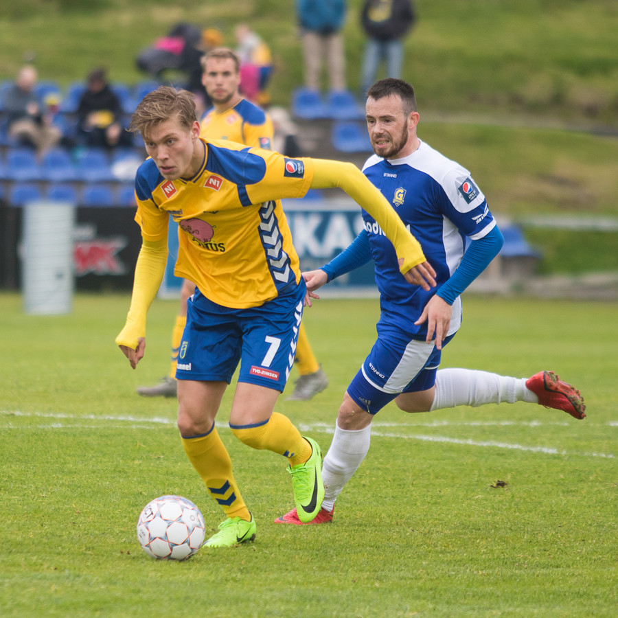 Brynjar Ásgeir fær ofbirtu í augun þegar hann mætir undirtreyjunni hans Valgeirs og þarf að brjóta á honum