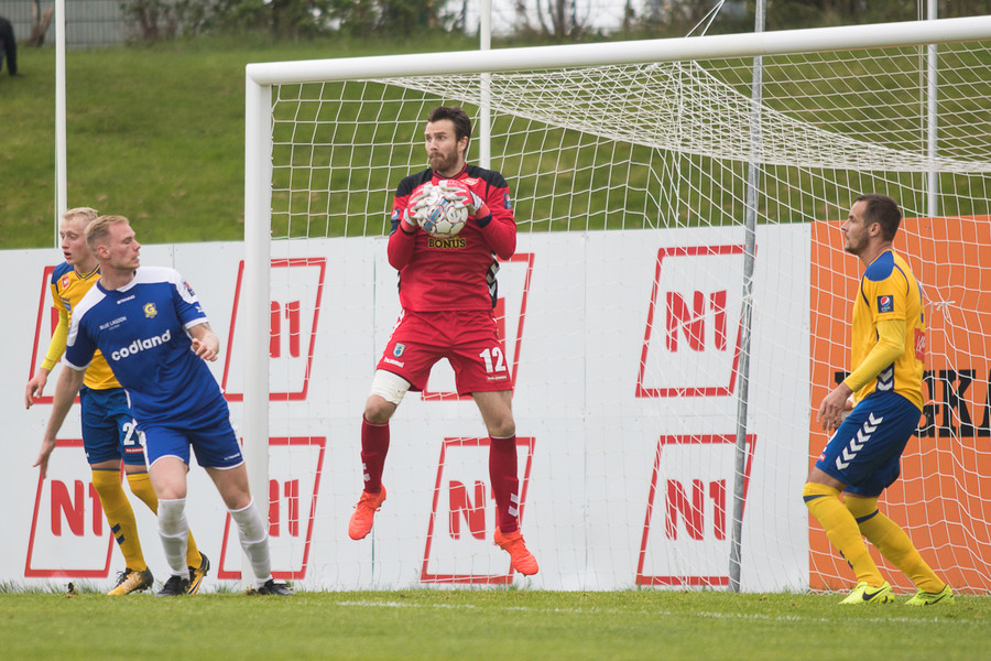 Gunnar Þorsteins með skot af 30 metrunum og aftur þarf Þórður að taka á honum stóra sínum.