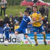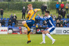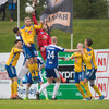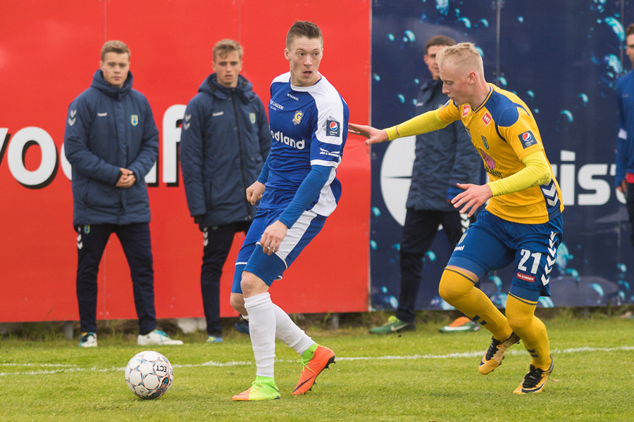 Marínó er að byrja þennan leik vel hinsvegar. Hann reynir herna flottan kross inn á teig sem að Alexander Veigar rétt missir af!