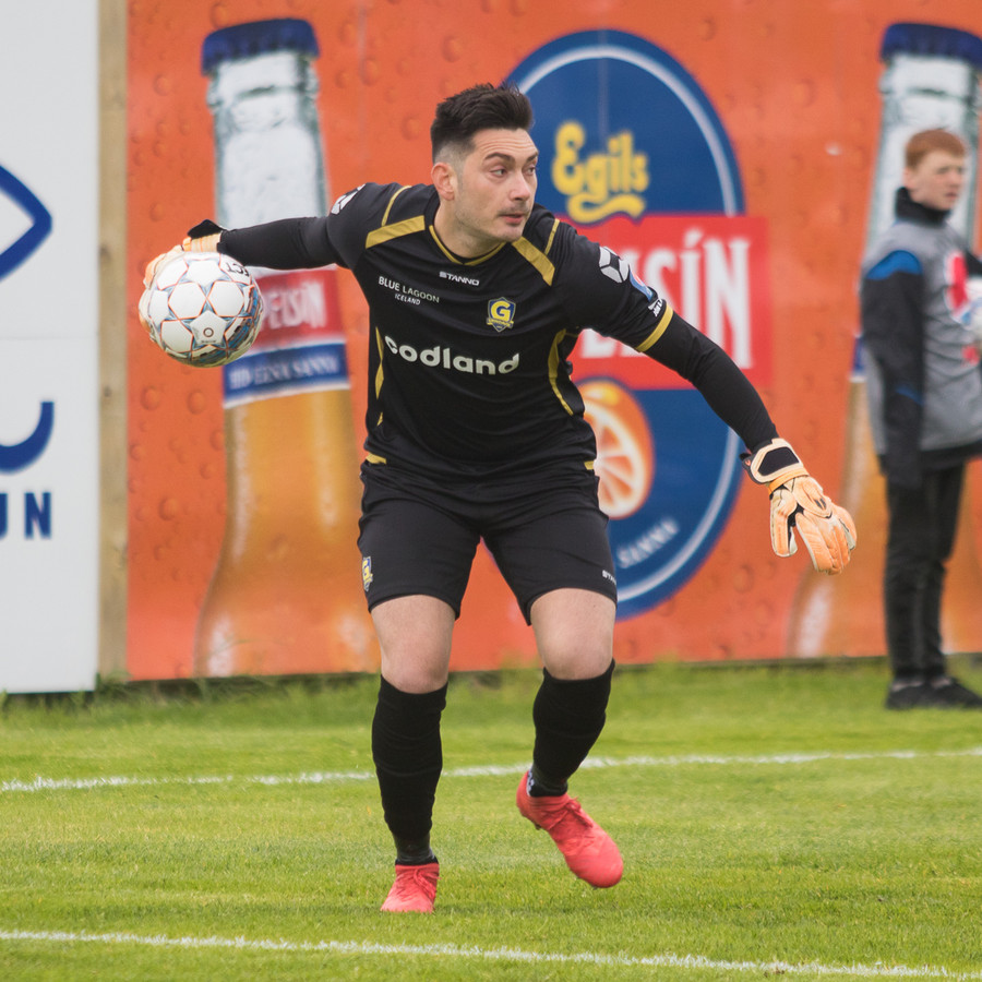 Stuttu seinna fá Grindvíkingar horn og nei það er ekki Gunnar sem að tekur það heldur Will Daniels.