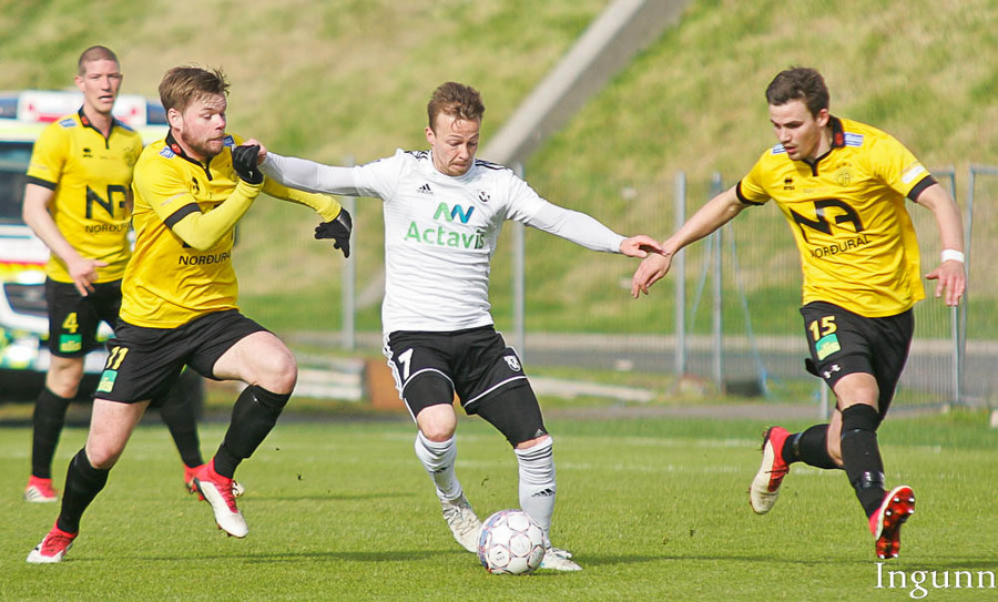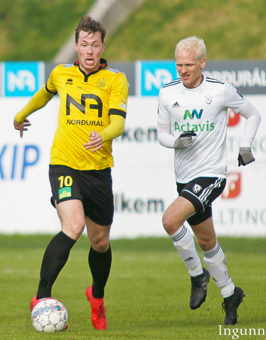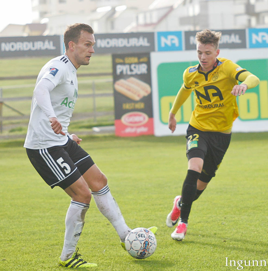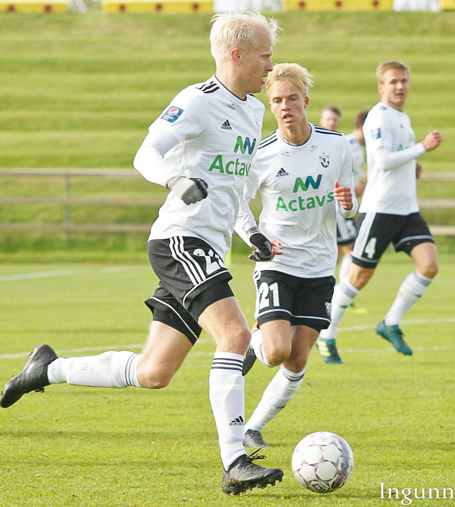 Skagamenn að sækja í sig veðrið. Bjarki Steinn við að komast í góða fyrirgjafastöðu inní teig en ætlar sér aðeins of mikið og missir boltann.