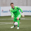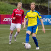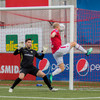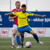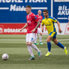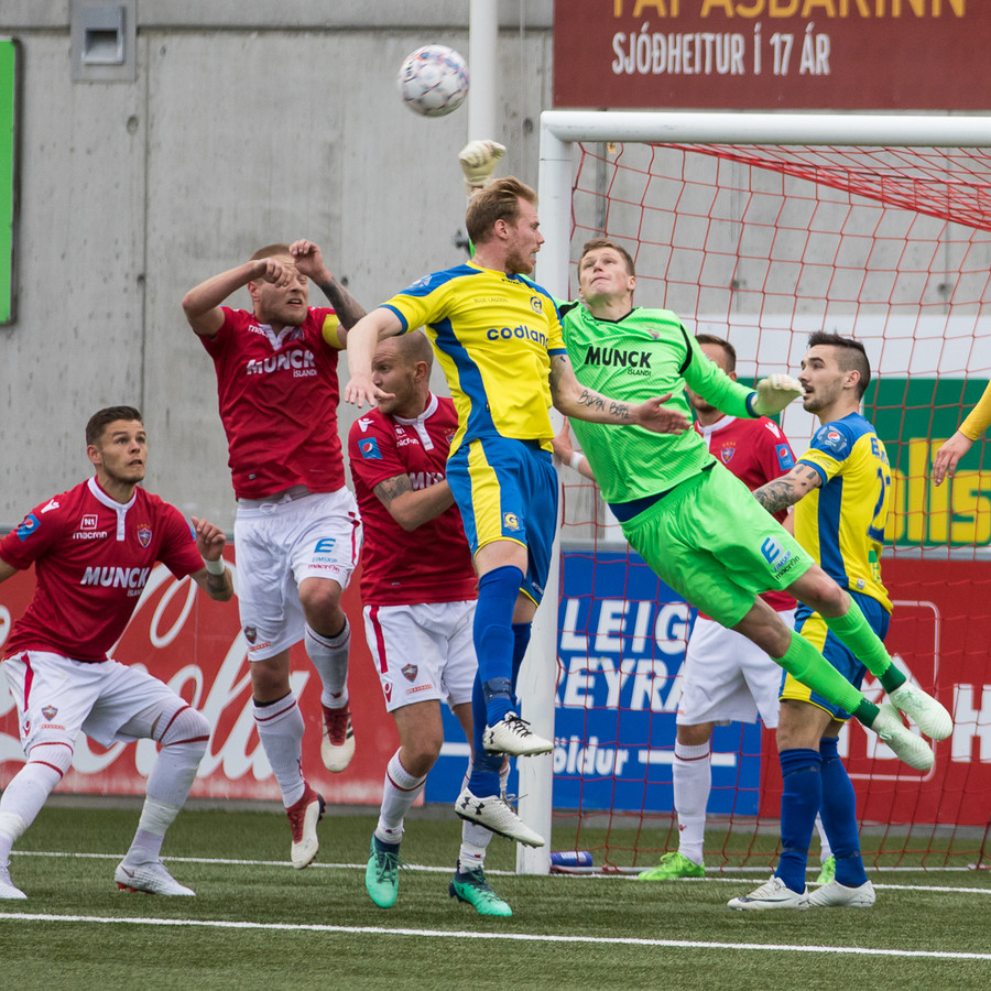 Sending frá Sigurði Agli á fjær, Kristinn Ingi lobbar yfir Jajalo en í þverslána.