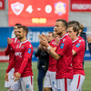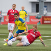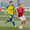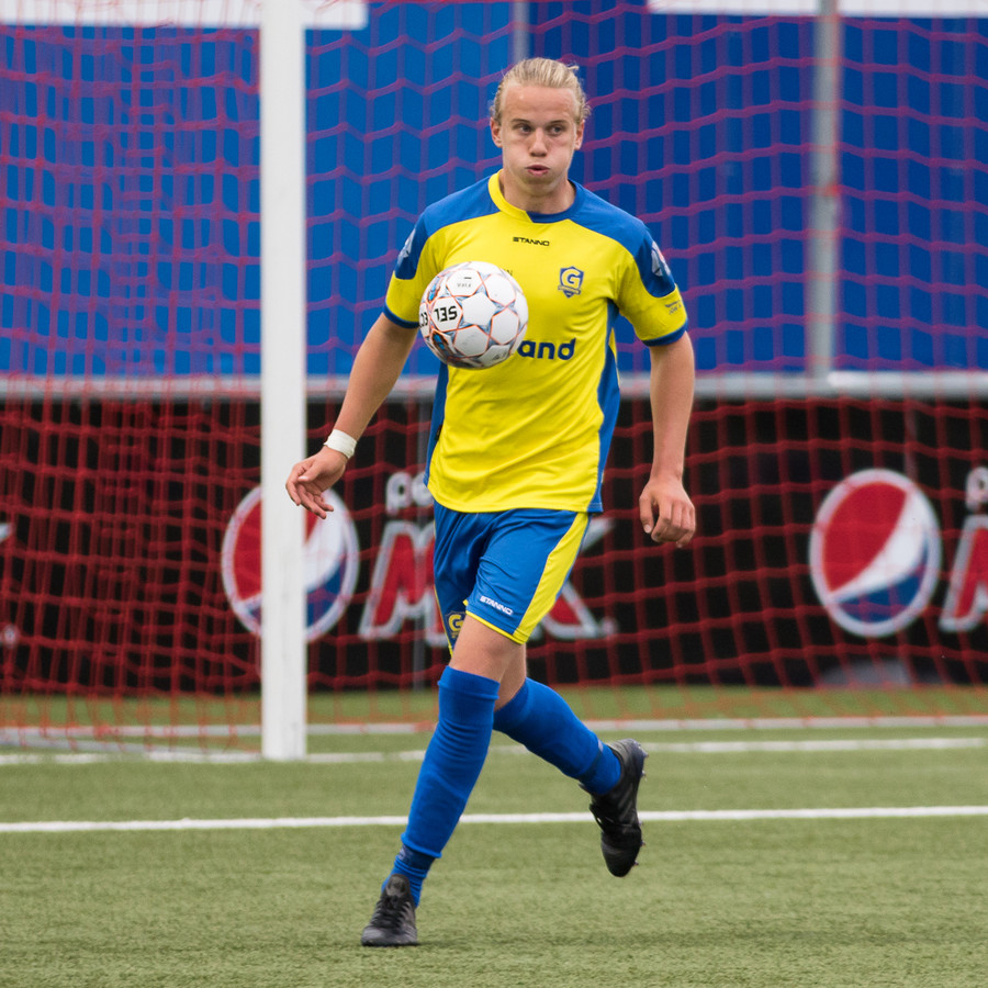 Löng sending á Hauk sem gerir vel í að skalla fallhlíf yfir varnarmenn gestanna, Patrik með enn eina hágæðaafgreiðsluna.