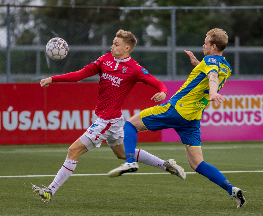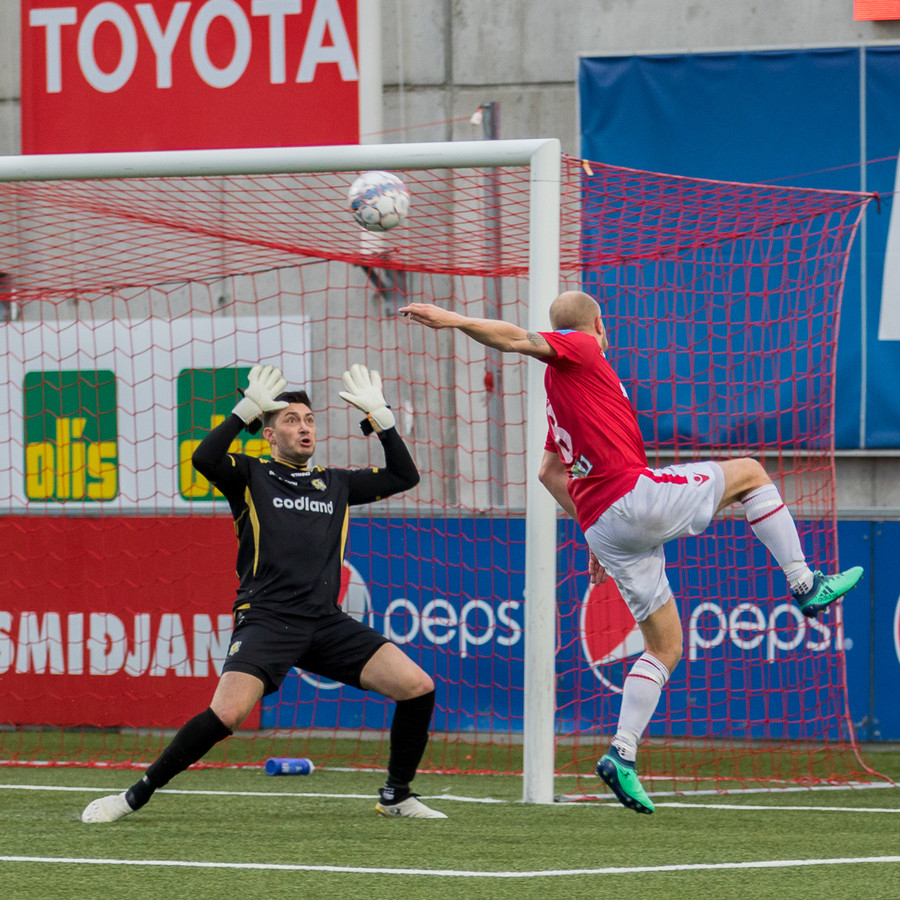 Frábær sending Einars úr djúpinu á vítapunktinn þar sem Kristinn nikkaði rétt vinstra megin við sig og Pedersen kláraði fagmannlega. Fyllilega sanngjarnt.