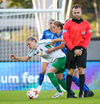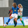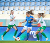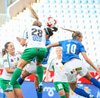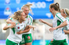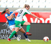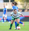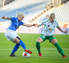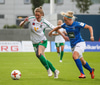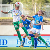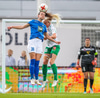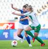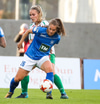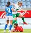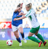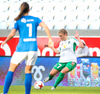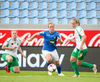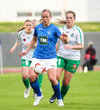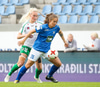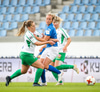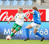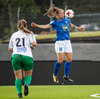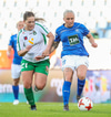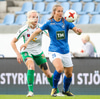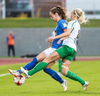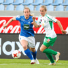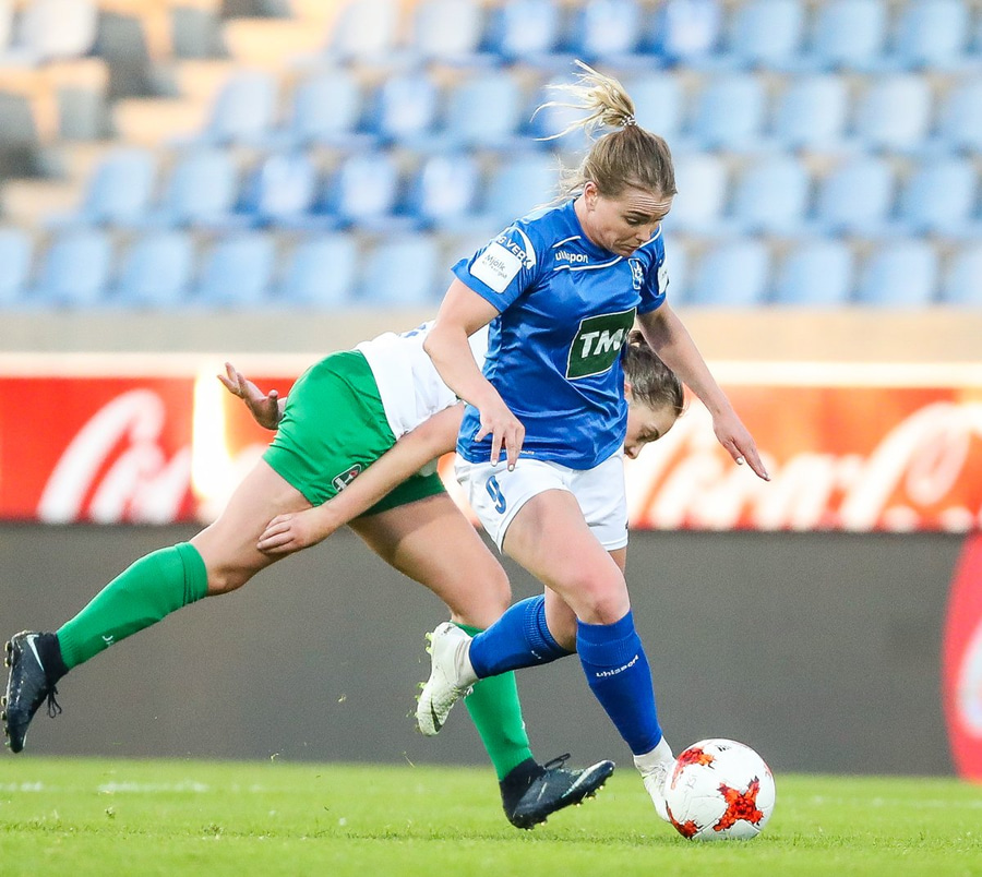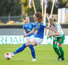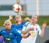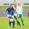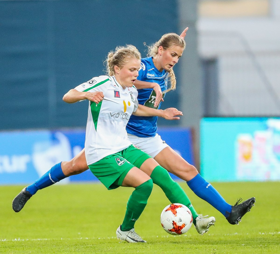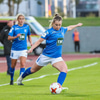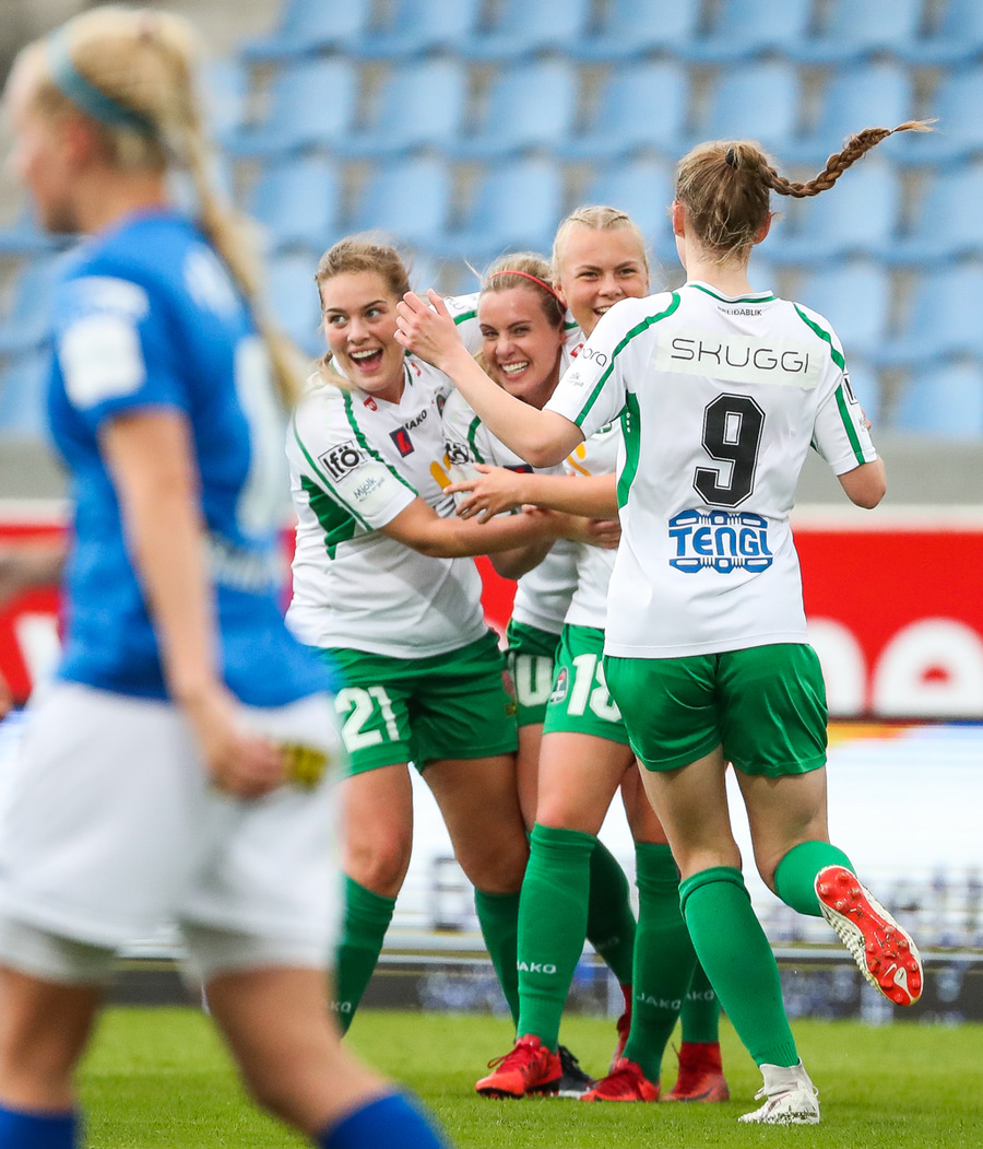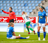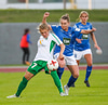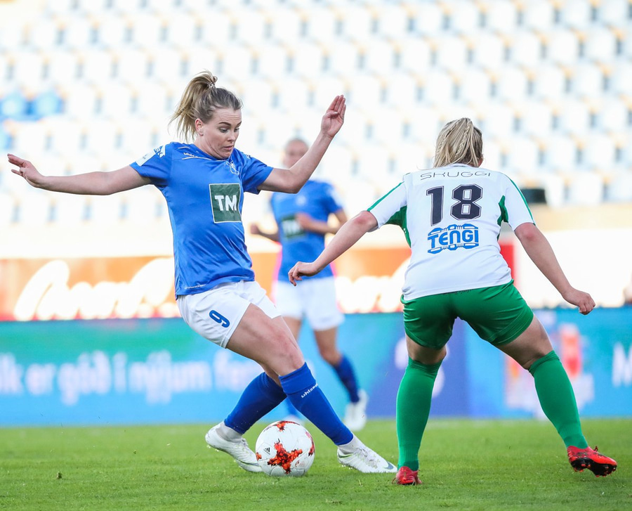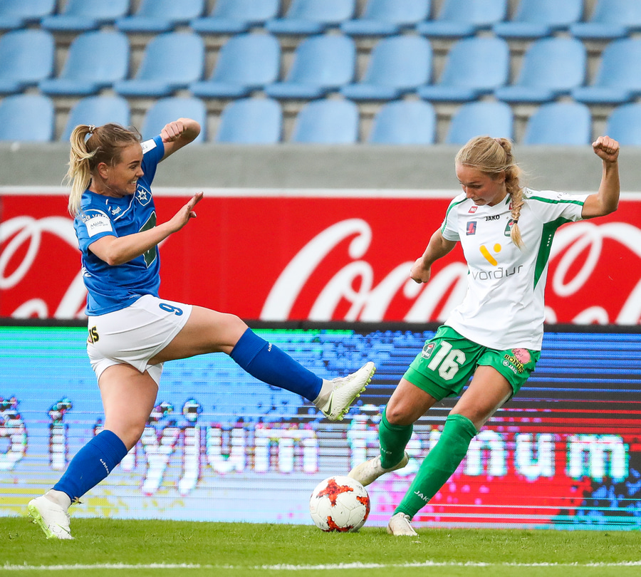 Blikar með hættulega fyrirgjöf frá hægri, Berglind Björg er í boltanum og nær skoti en boltinn í stöngina!
