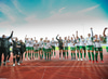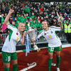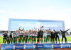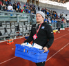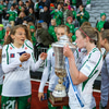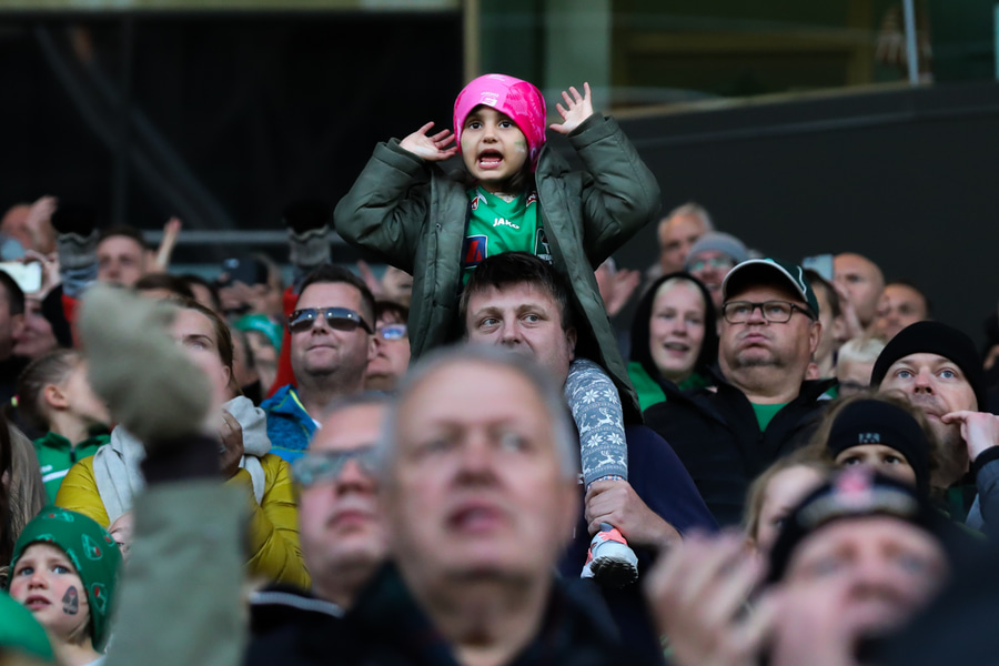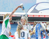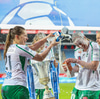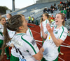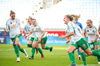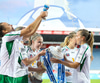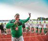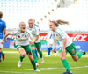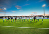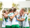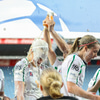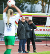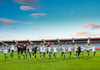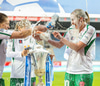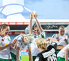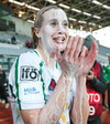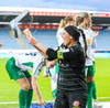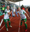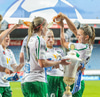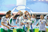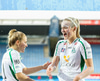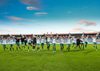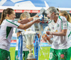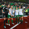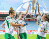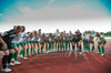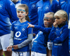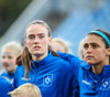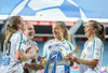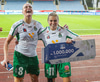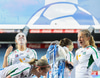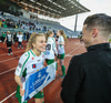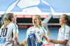 Á meðan mætir heil fylking af efnilegum fótboltastelpum inn á völlinn til að standa heiðursvörð um fyrirmyndirnar.