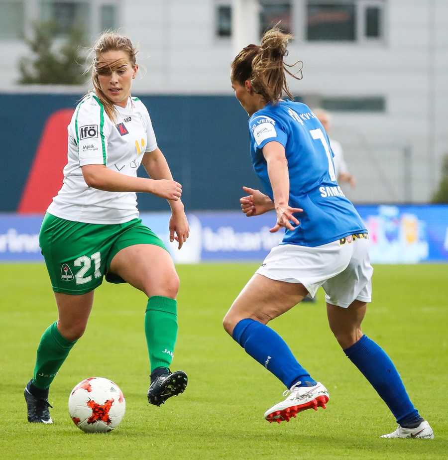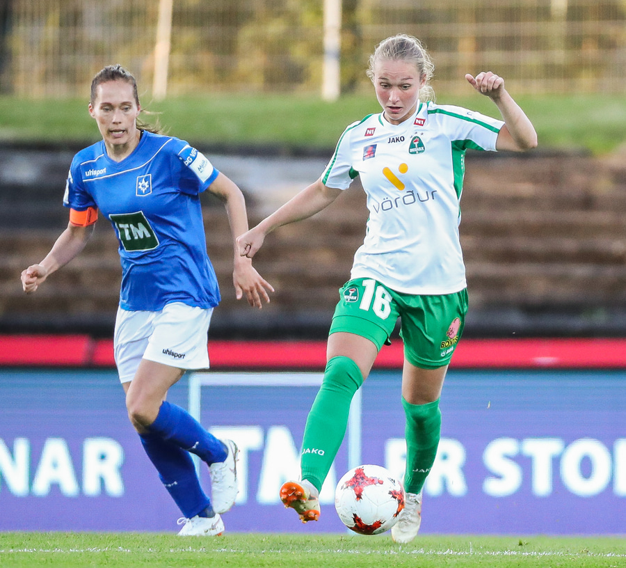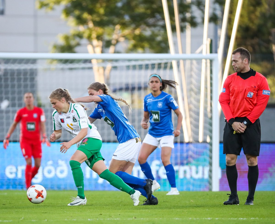 Fór illa með Önnu Maríu. Klobbar hana við endalínuna og reyndi svo að endurtaka leikinn gegn Sigrúnu Ellu en hafði ekki erindi sem erfiði. Vann þó hornspyrnu fyrir Blika.