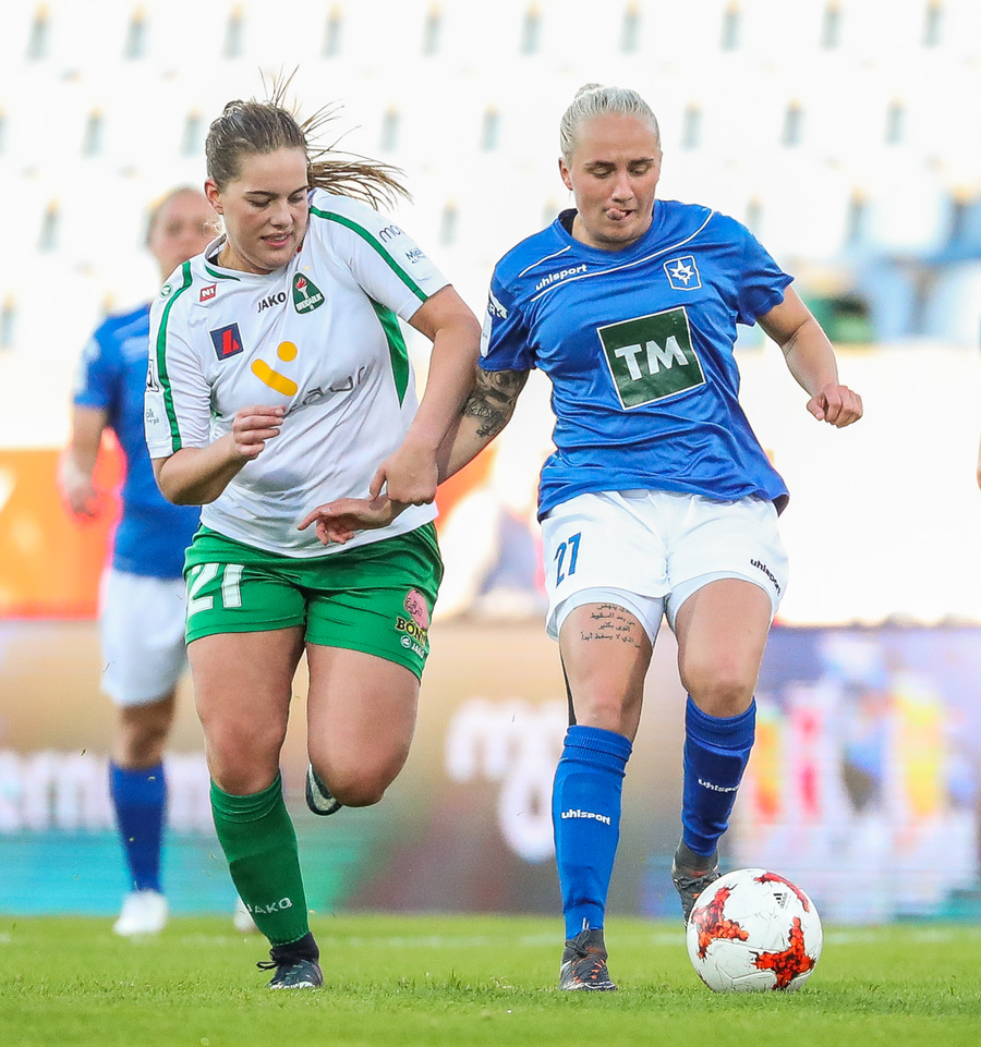 Frábær varnarvinna hjá Fjollu. Stoppar ágætt uppspil Stjörnunnar. Það fer ekkert framhjá henni á miðjunni. Búin að vera hrikalega góð í kvöld.