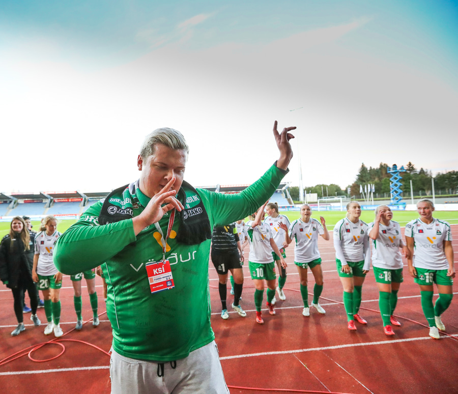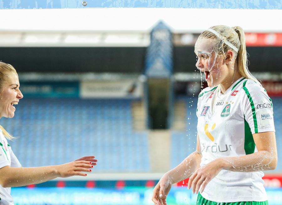 Fyrsta skipting Blikanna. Munda leysir Hafnfirðinginn af. Báðar að spila sinn fyrsta bikarúrslitaleik.