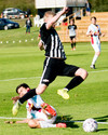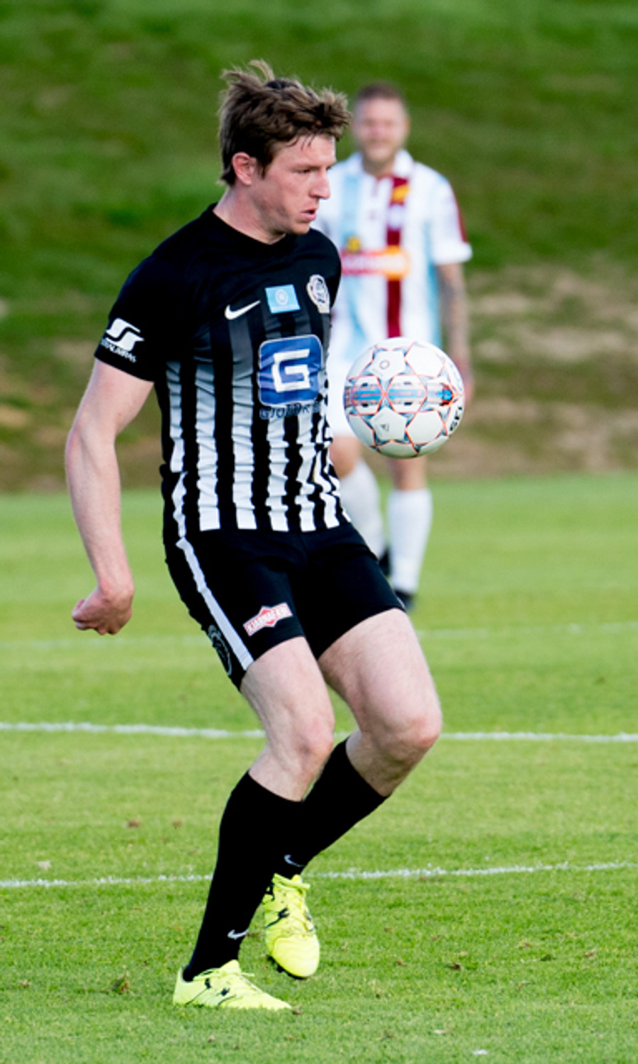 Aftur er Sævar kominn í fína stöðu. Brynjar misreiknar bolta og skallar hann bak við sig, Sævar nær til boltans og skýtur á markið en boltinn framhjá