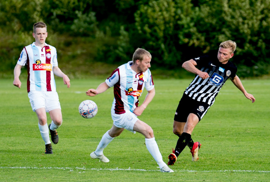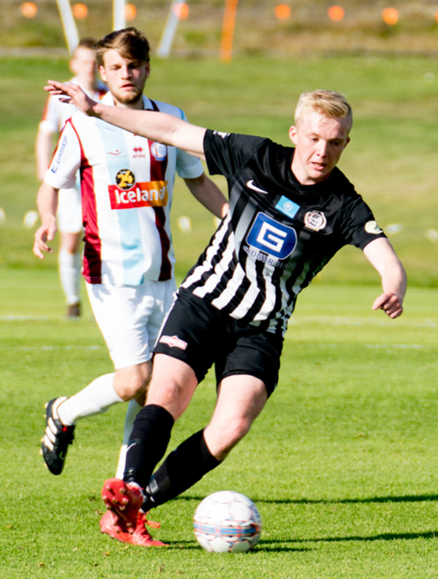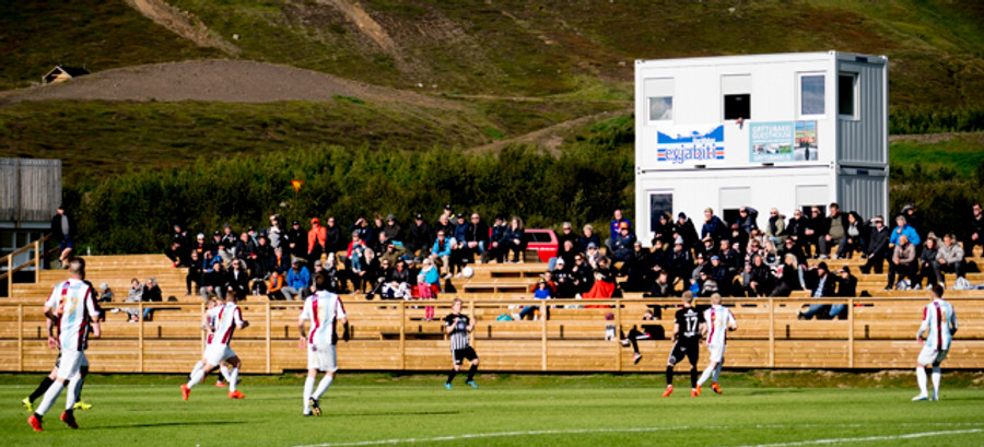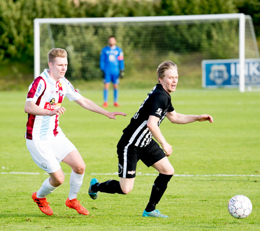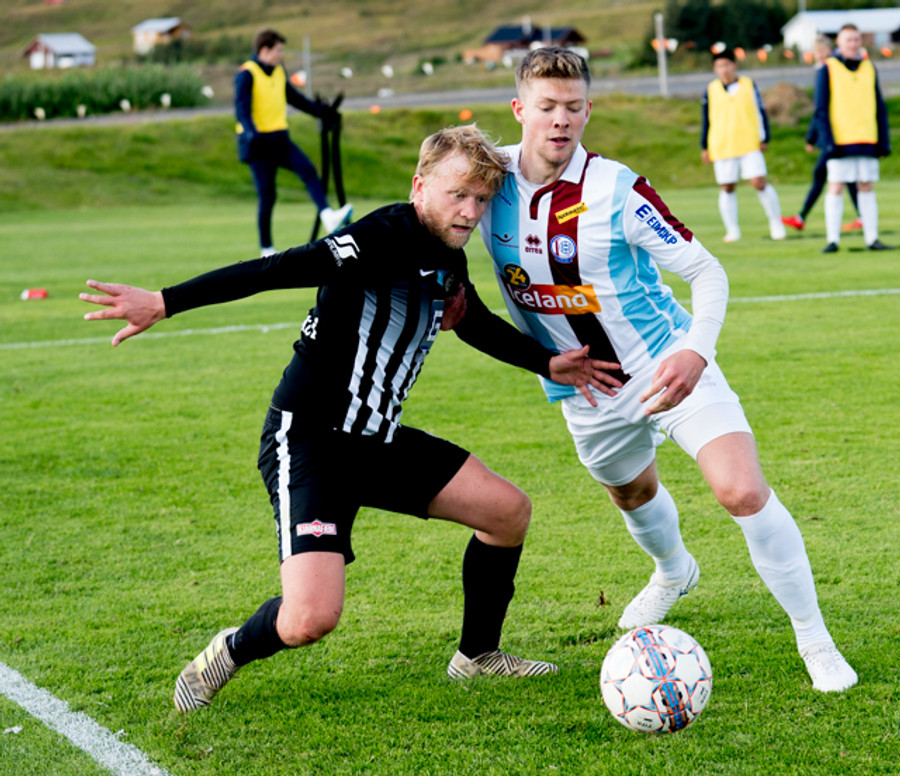 Nokkuð góðar aðstæður til fótbolta á Grenivík í dag, sól og 14 stiga hiti. Svolítil vindur úr norðvestur sem gæti strítt liðunum í sitthvornum hálfleiknum.