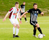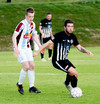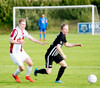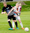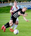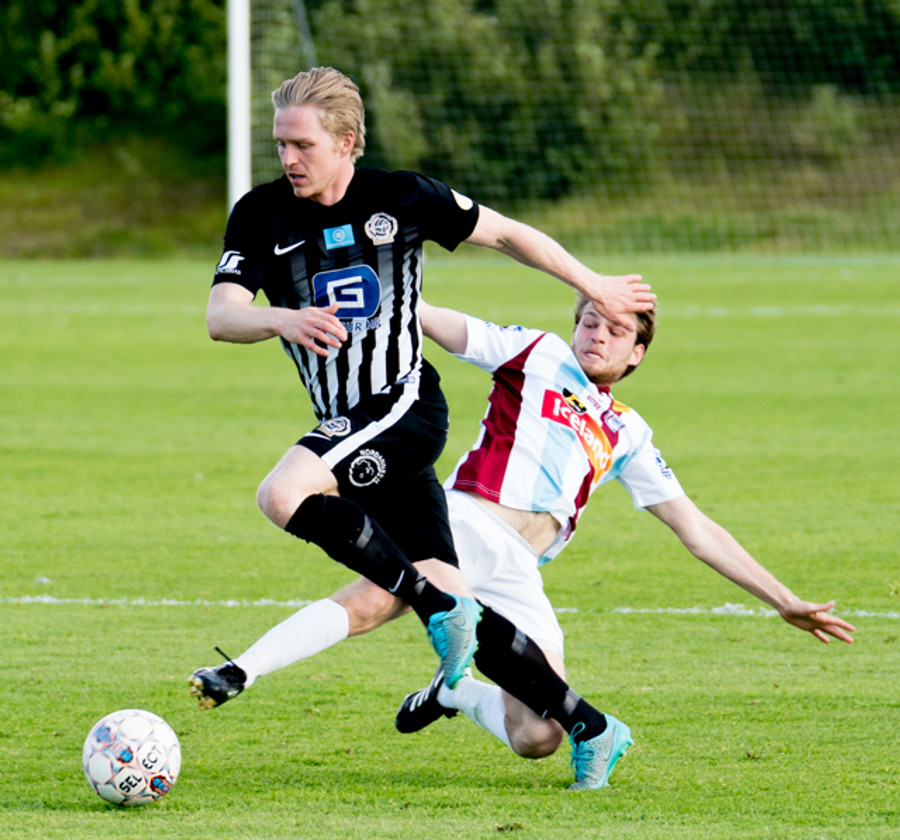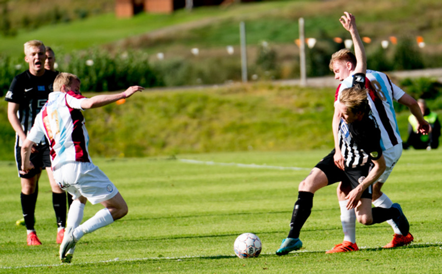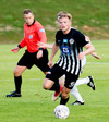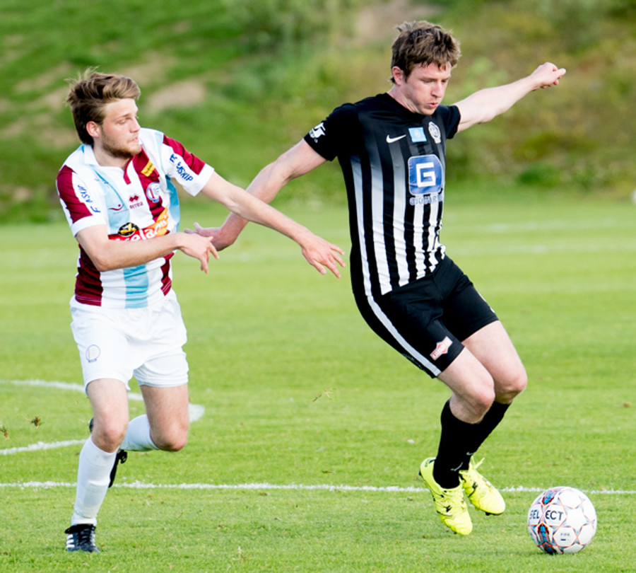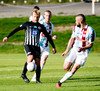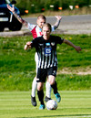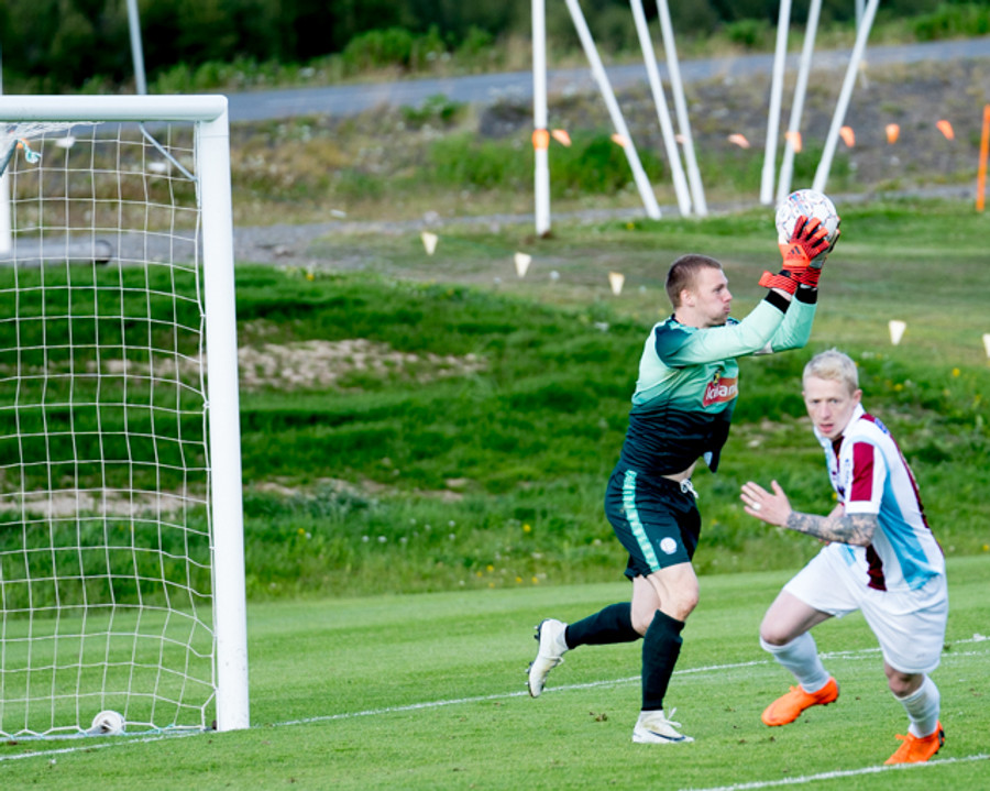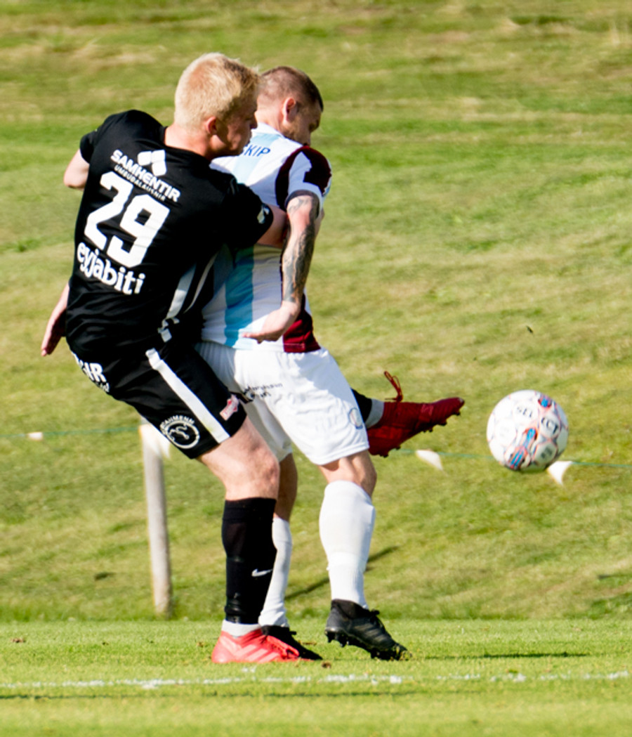 ÚFF! Magni bjargar á línu! Sævar kemst einn í gegn, leikur á Hjört í markinu en er kominn í þrönga stöðu, nær einhvern veginn skoti á marki. Boltinn dansar á línunni áður en þeir koma boltanum í burtu
