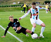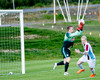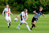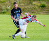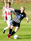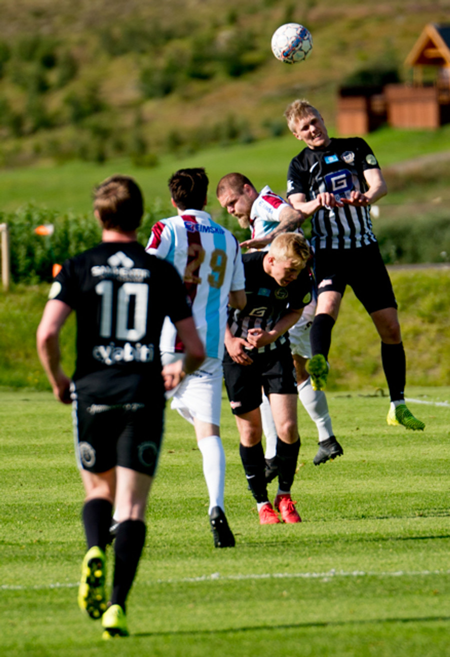 Vuk Oskar með góðan bolta fyrir markið hjá Magna mönnum en Baldvin skallar boltann í innkast