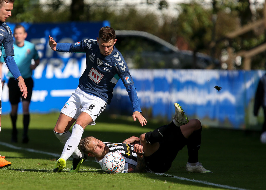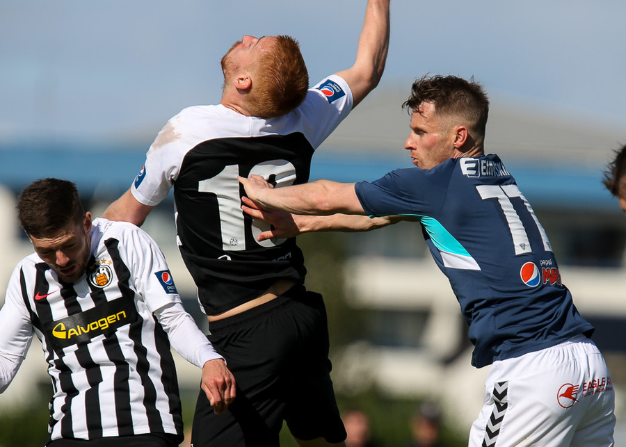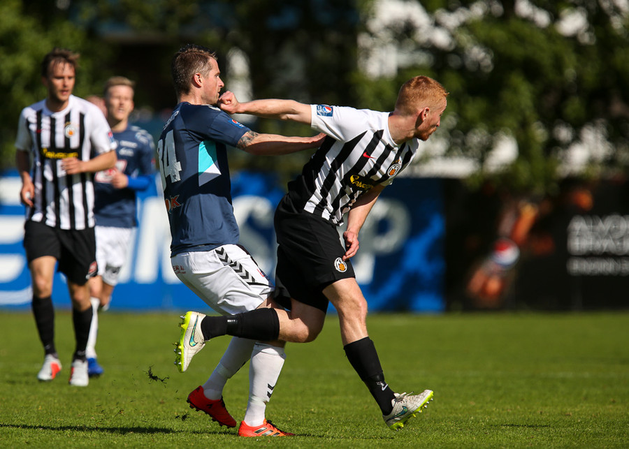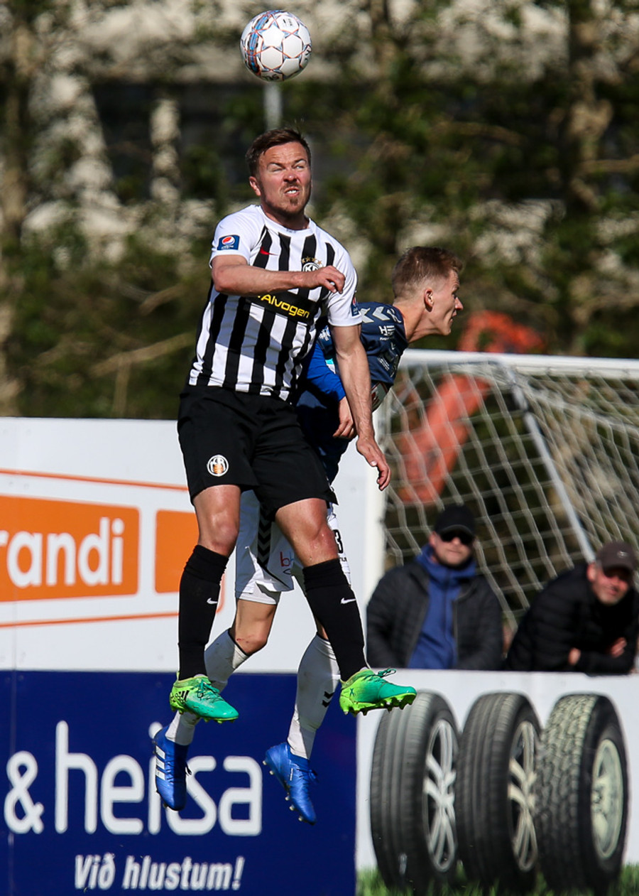 Bjöggi kemur hér í stífa pressu á Halldór Pál sem endar með Halldór sparkar boltanum í hornspyrnu.