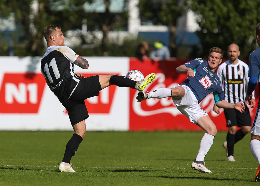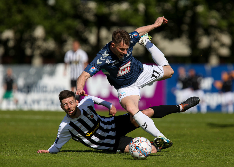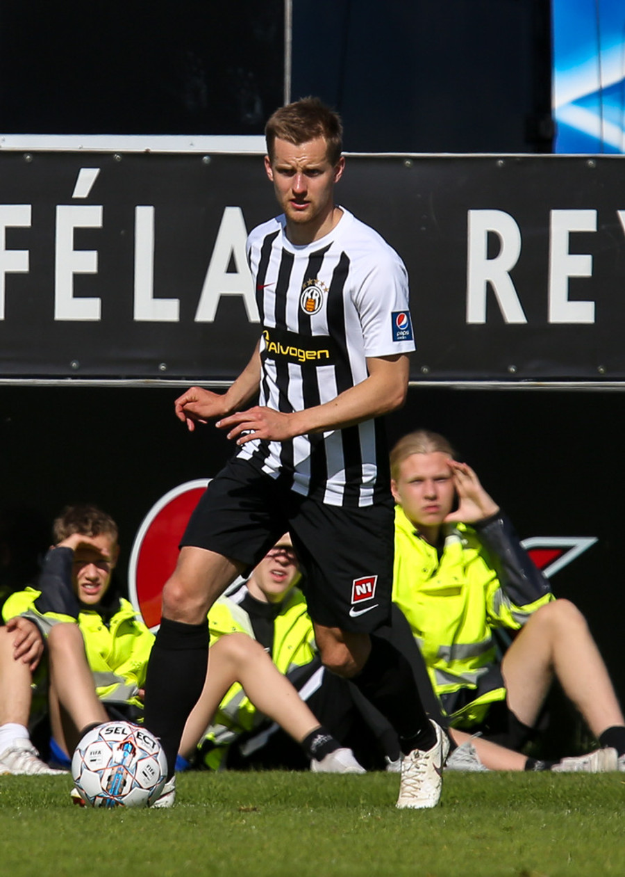 Atli Arnars með flotta takta hérna og það endar með að Finnur tæklar hann rétt fyrir utan teig, spurning hvort Kaj Leó skori úr þessari.