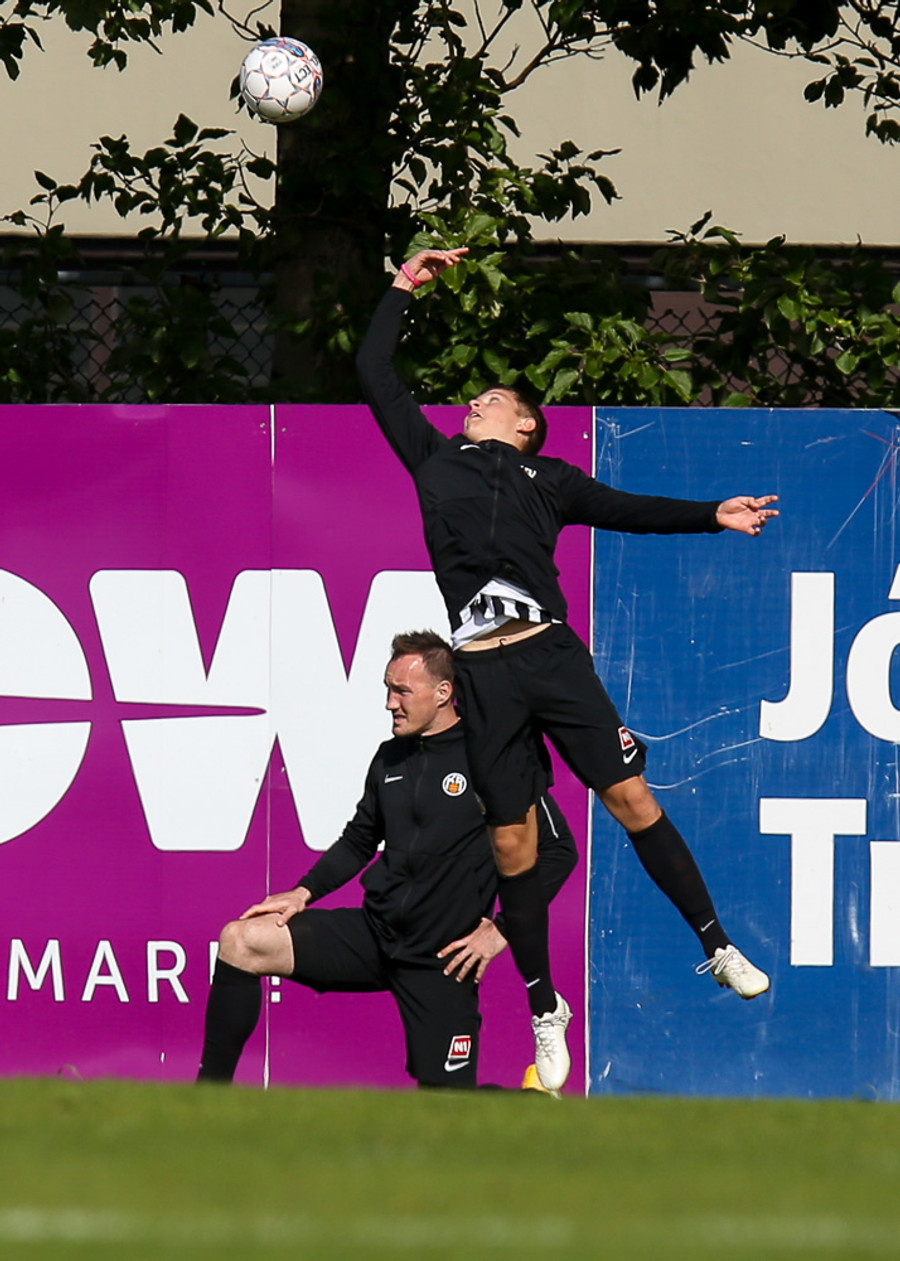 Atli Arnars í dauðafæri hérna, Kaj Leó skallaði boltann fyrir Atla sem var einn á móti Beiti en rann á rassinn þegar hann ætlaði að skjóta.