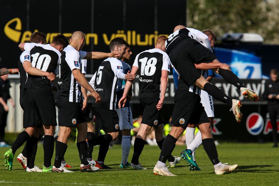 Allt er nú hægt, Finnur Orri Margeirsson að skora fótboltamark! Eftir tvær frábærar vörslur Halldórs frá Kennie barst boltinn á Finn Orra sem skoraði sitt fyrsta KSÍ mark!