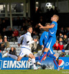 Movruz Mammadov sólar Hauk Heiðar á vinstri kantinum og reynir síðan skot en Árni Snær sér við því.