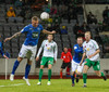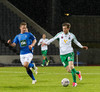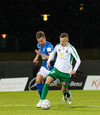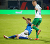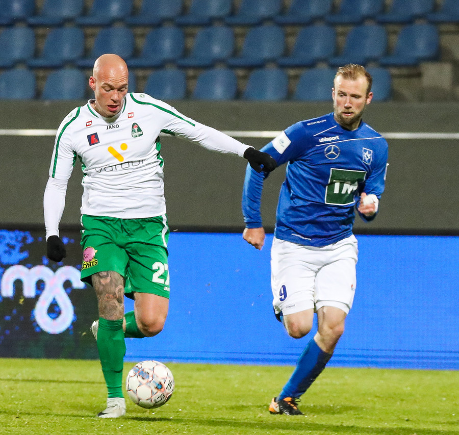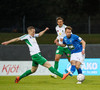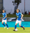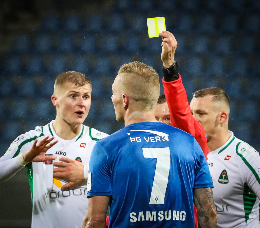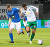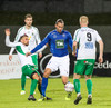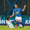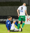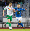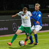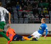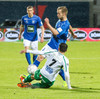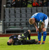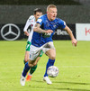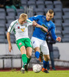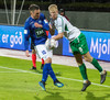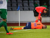 Alex straujar hér Gísla á miðjum vellinum, full harkaleg tækling en sleppur við spjald.