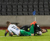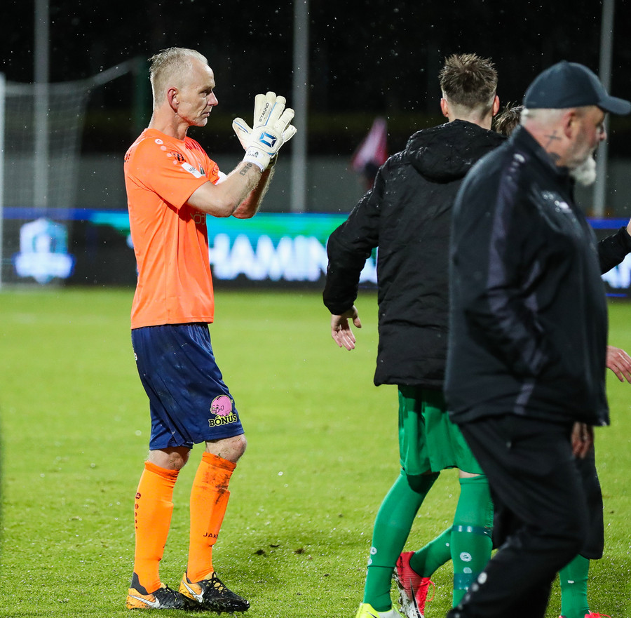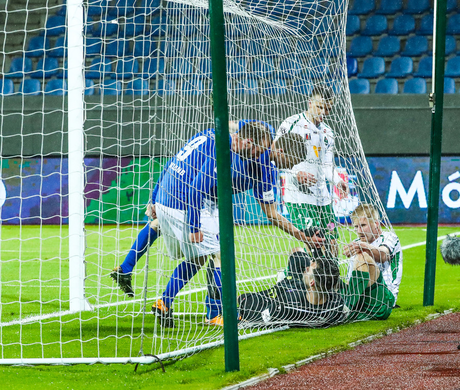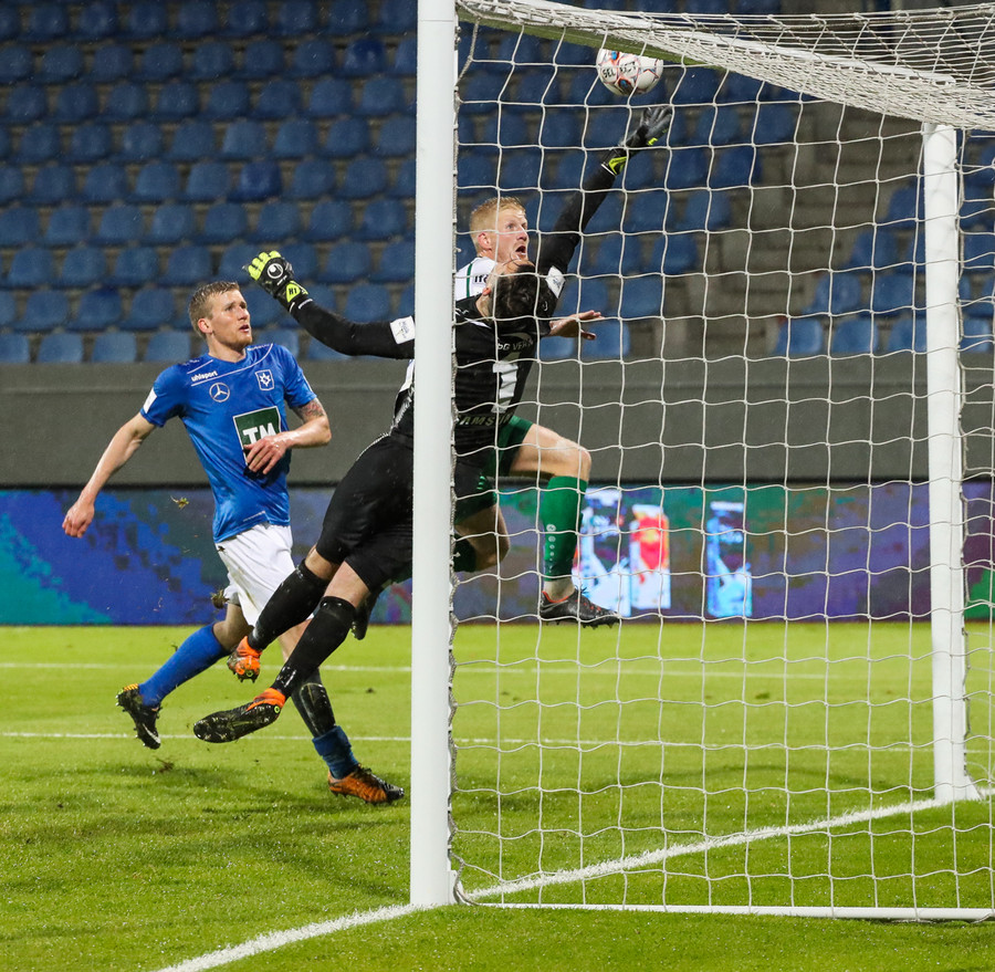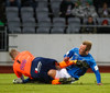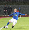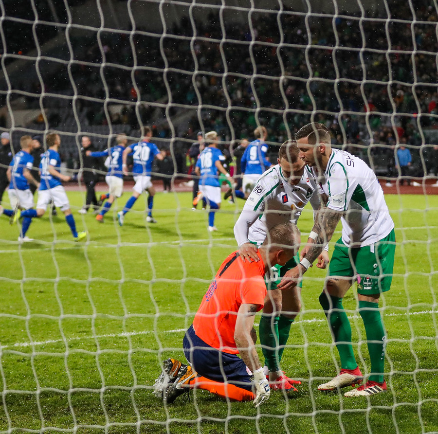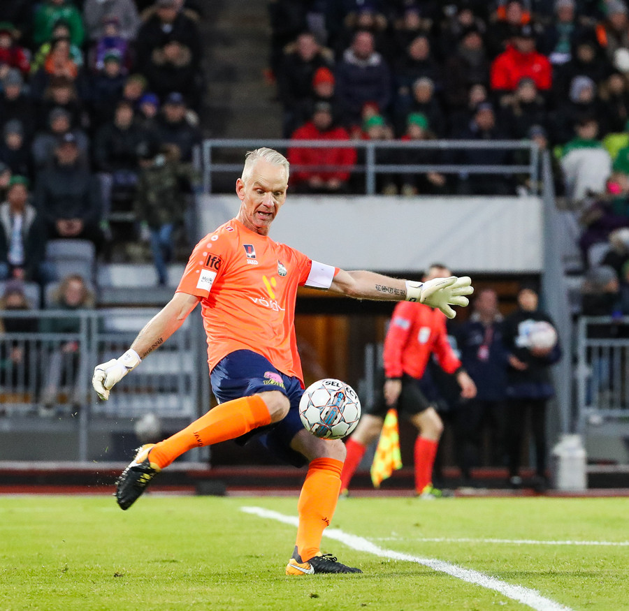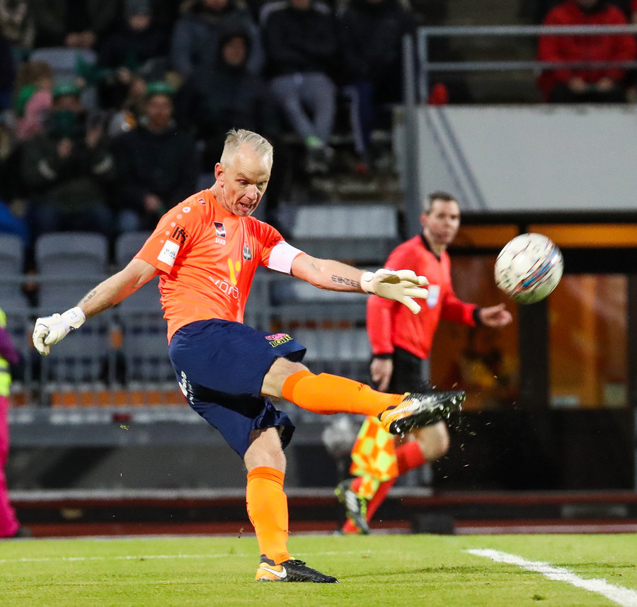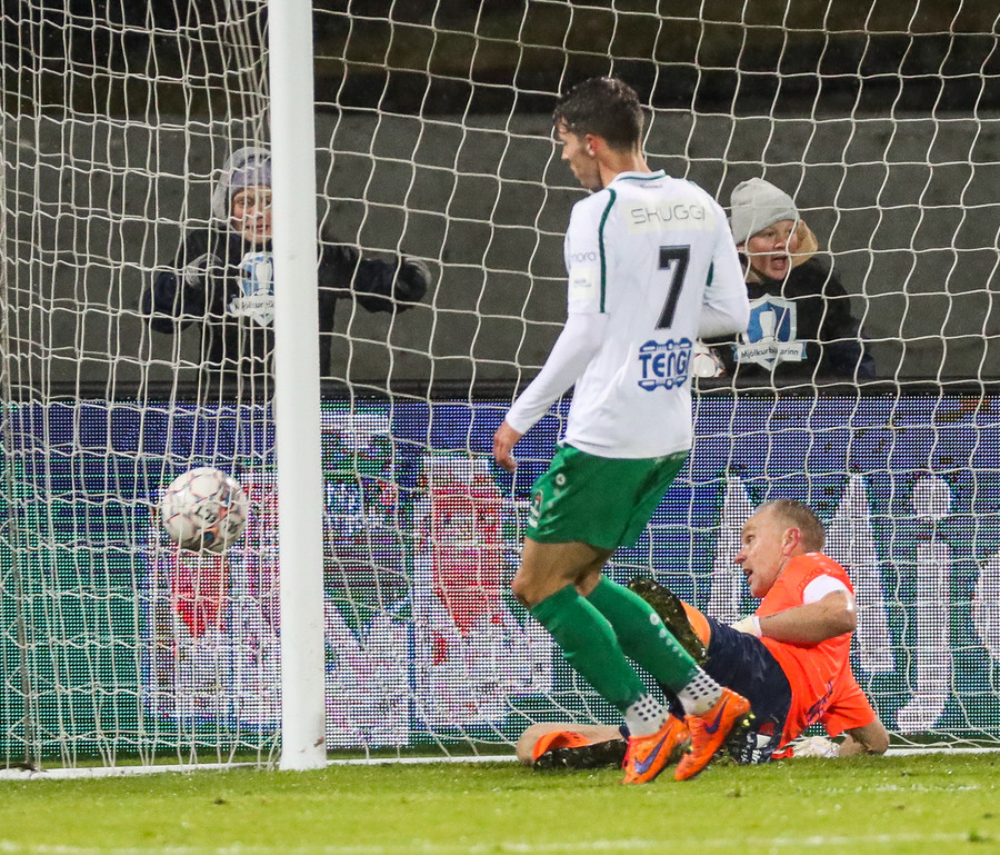 Vá Halli sleppur með skrekkinn, fyrirgjöf frá Gísla sem Halli ætlar að kýla en hittir ekki boltann. Þaðan fer boltinn til Davíðs sem skýtur en Jói Lax hendir sér fyrir skotið.