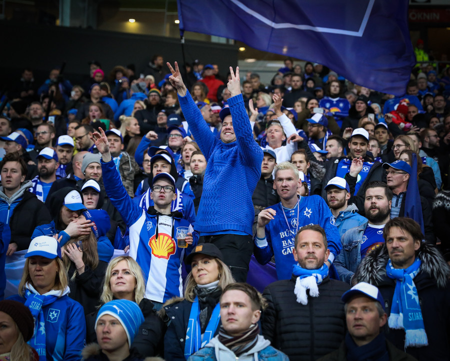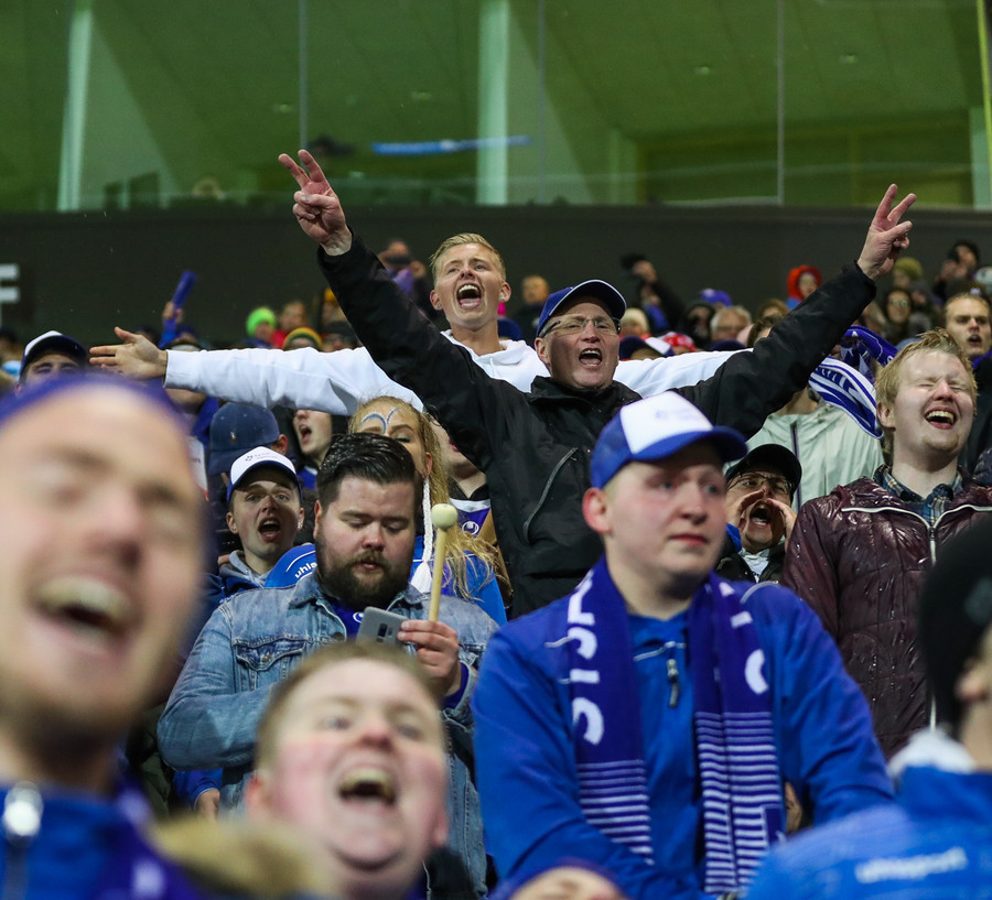 Rétt tæpar 10 mínútur í að leikurinn hefjist og ég get hreinlega ekki beðið, stemningin er svakleg hérna!