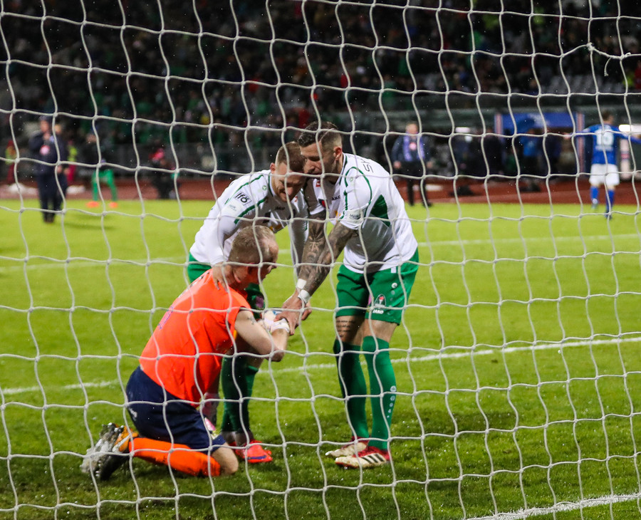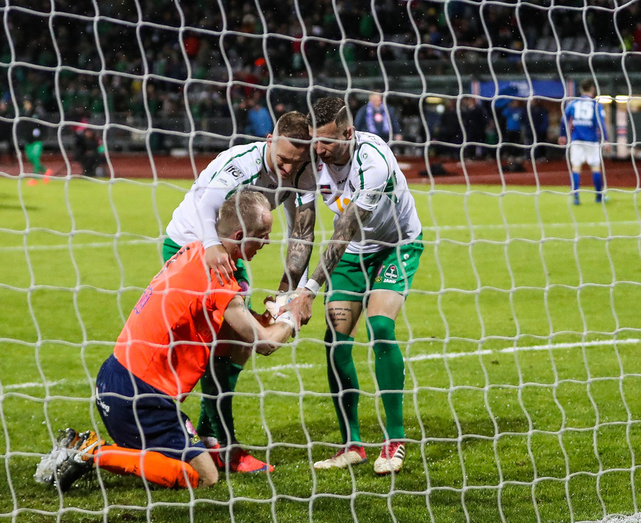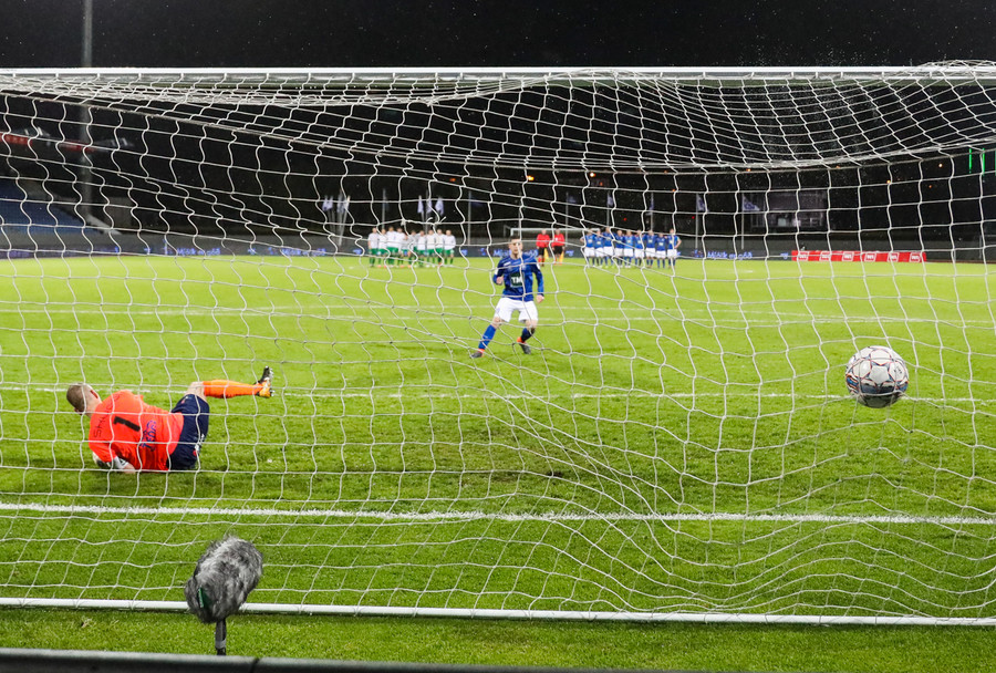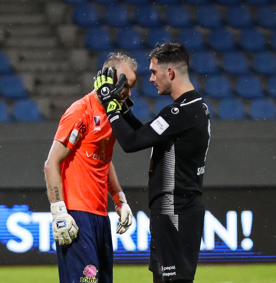 Mikkelsen skorar úr fyrsta vítinu, Halli í rétt horn en alveg út við stöng hjá Thomas. Nú taka Stjörnumenn tvö víti.