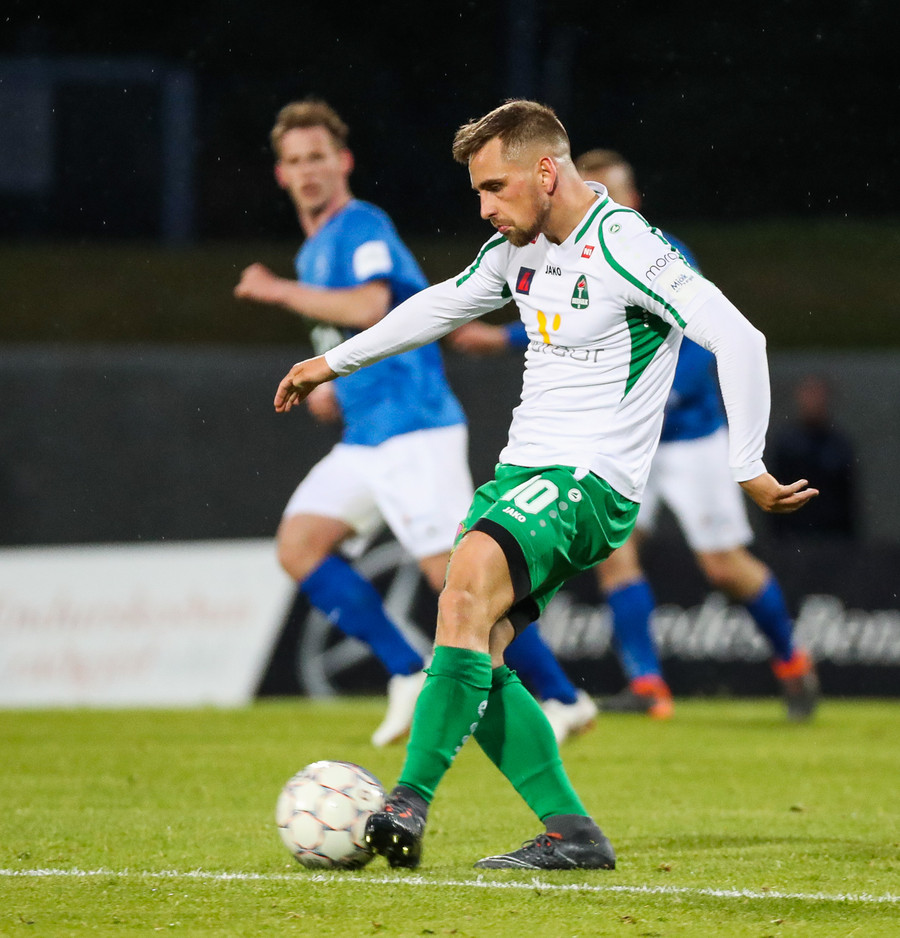 Oliver með aukaspyrnu yfir vegginn en rétt framhjá markinu, alls ekki galin tilraun.