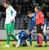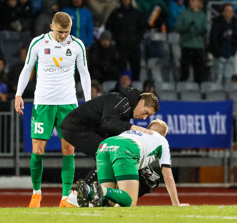 Elfar Freyr þarf aðhlynningu hér, kominn inná aftur en spurning hvort hann geti klárað þennan leik.