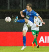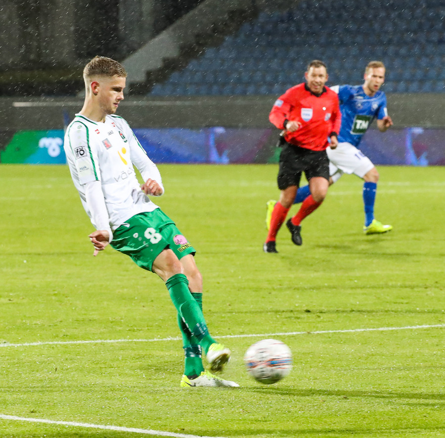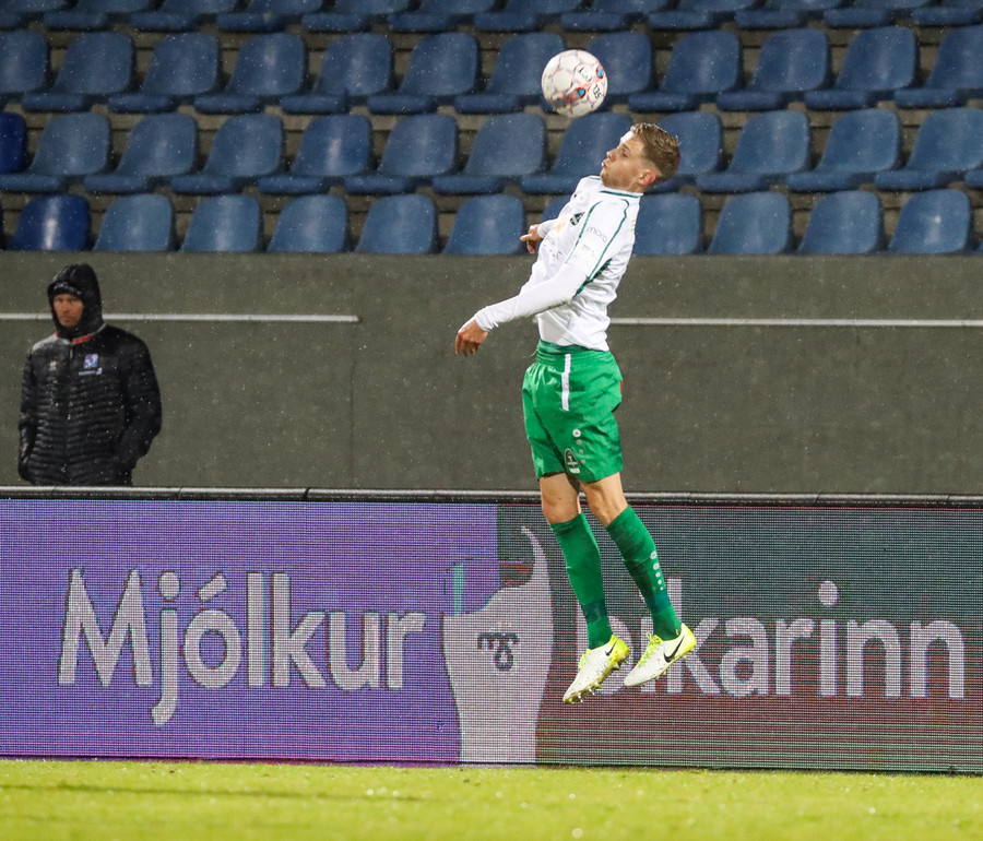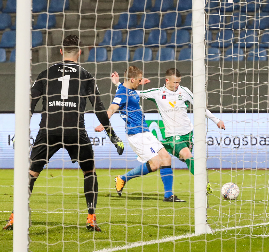 Gísli Eyjólfs ætlar að reyna við draumamark hér, boltinn kemur á lofti til hans og hann ætlar að negla boltanum en hittir hann alls ekki og boltinn til hliðar.
