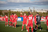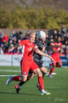 HK-ingar leika í svört/gráum varabúningum sínum í dag, flottur stíll á þeim í dag. Haukarnir í sínum hefðbundnu alrauðu búningum.