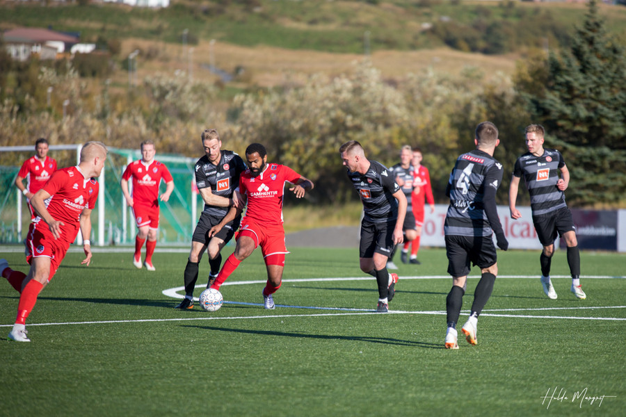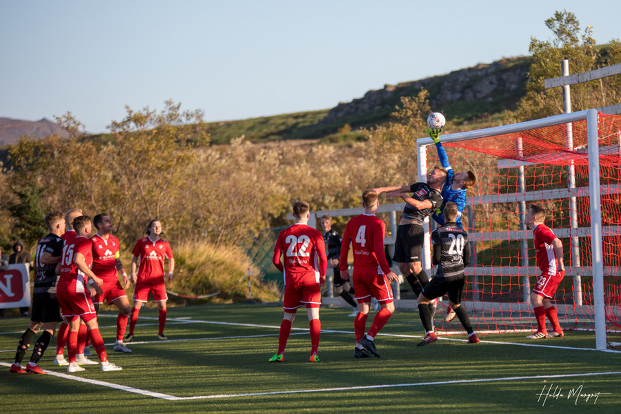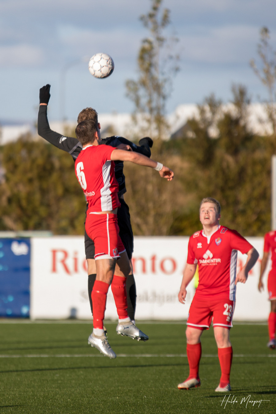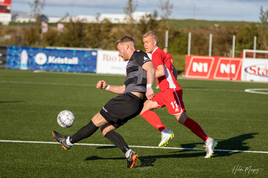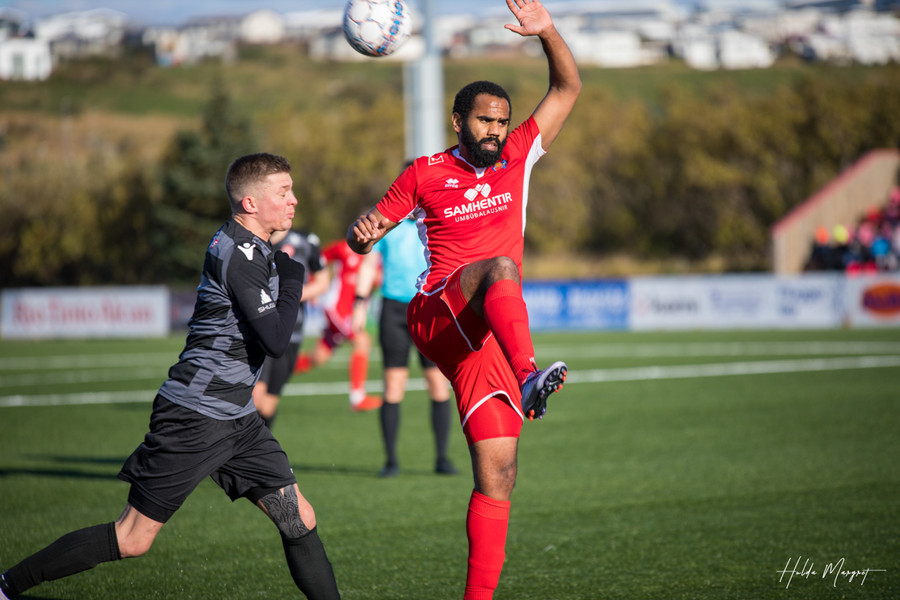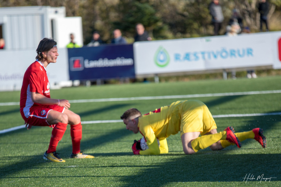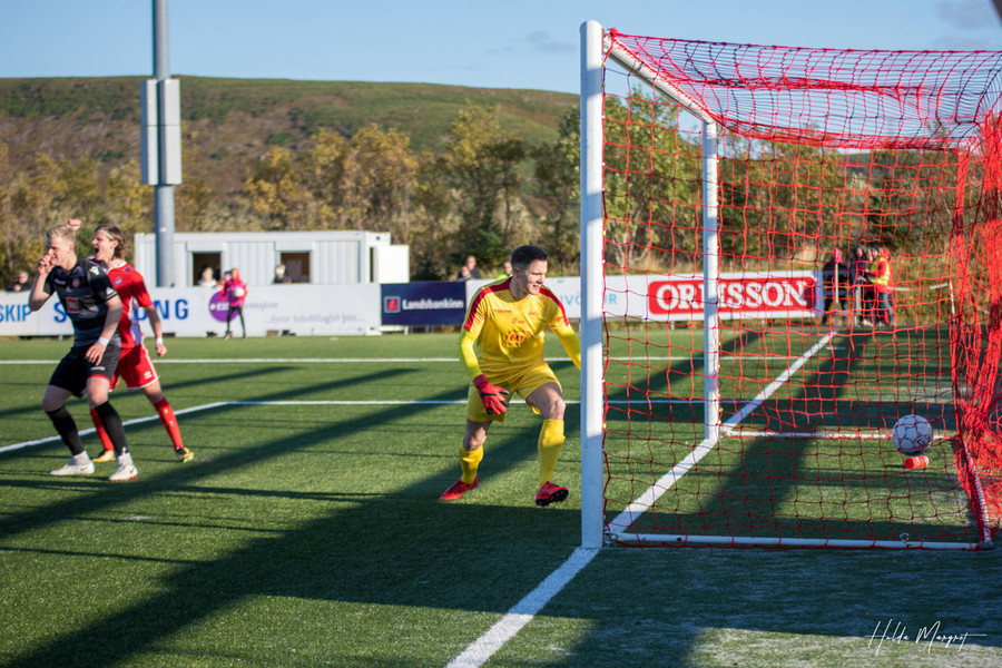 Boltinn barst á fjæstöng þar sem Arnar Aðalgeirs gerði mjög vel í að koma boltanum á Elton sem var aleinn í teignum, fast niðri í hægra hornið, óverjandi fyrir Arnar