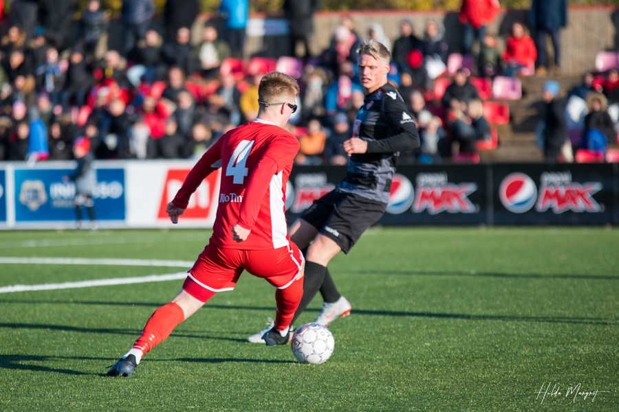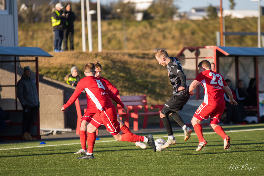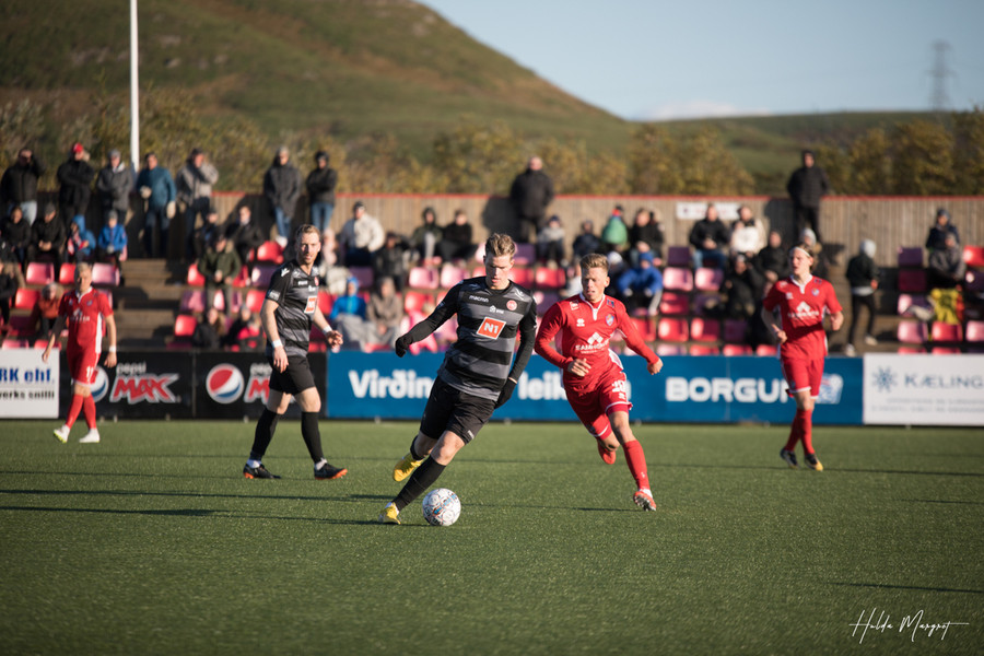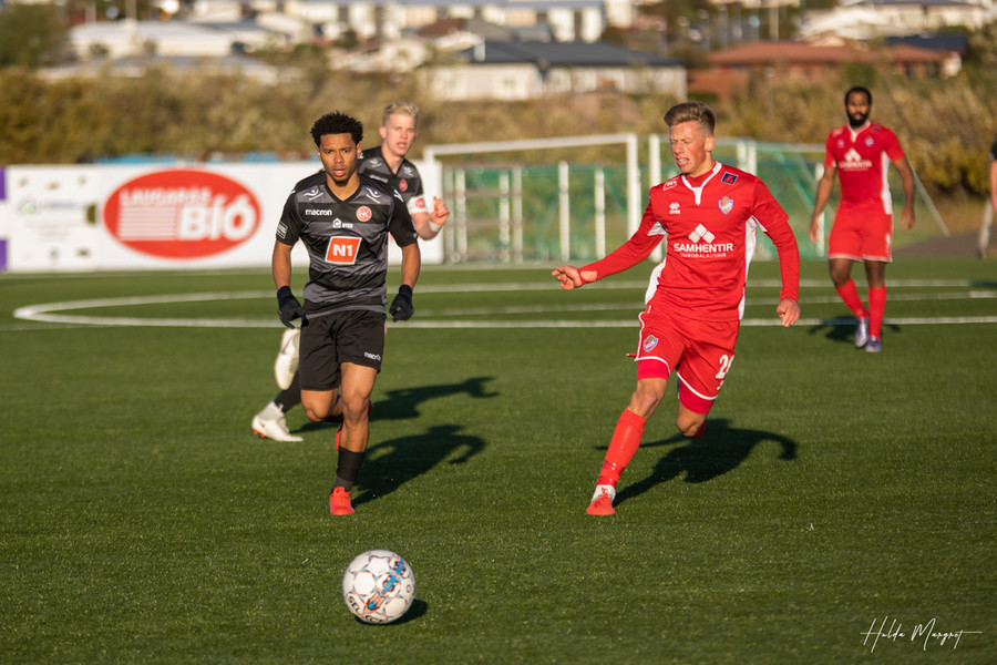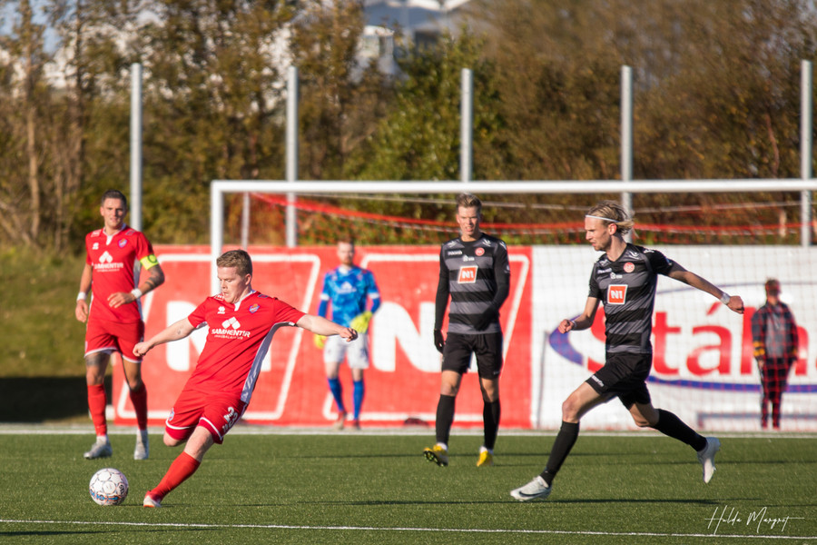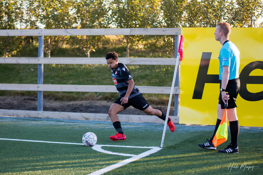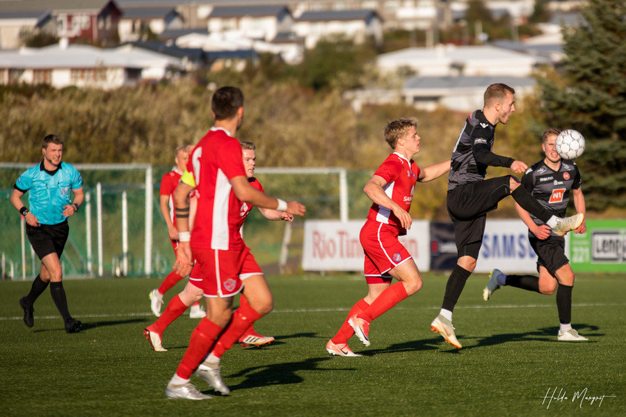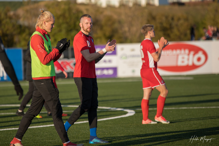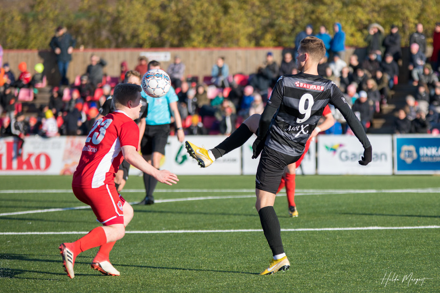 Boltinn barst á fjæstöng þar sem Arnar Aðalgeirs gerði mjög vel í að koma boltanum á Elton sem var aleinn í teignum, fast niðri í hægra hornið, óverjandi fyrir Arnar