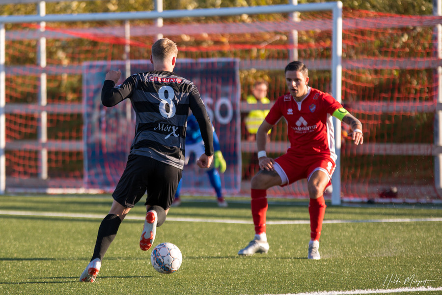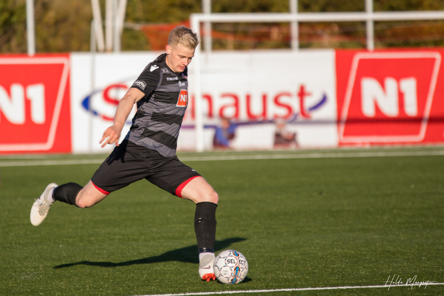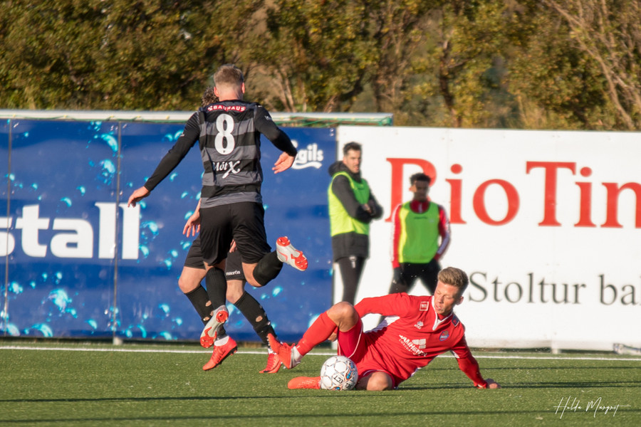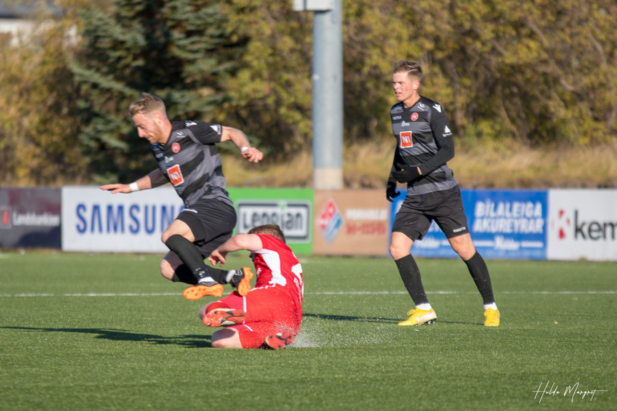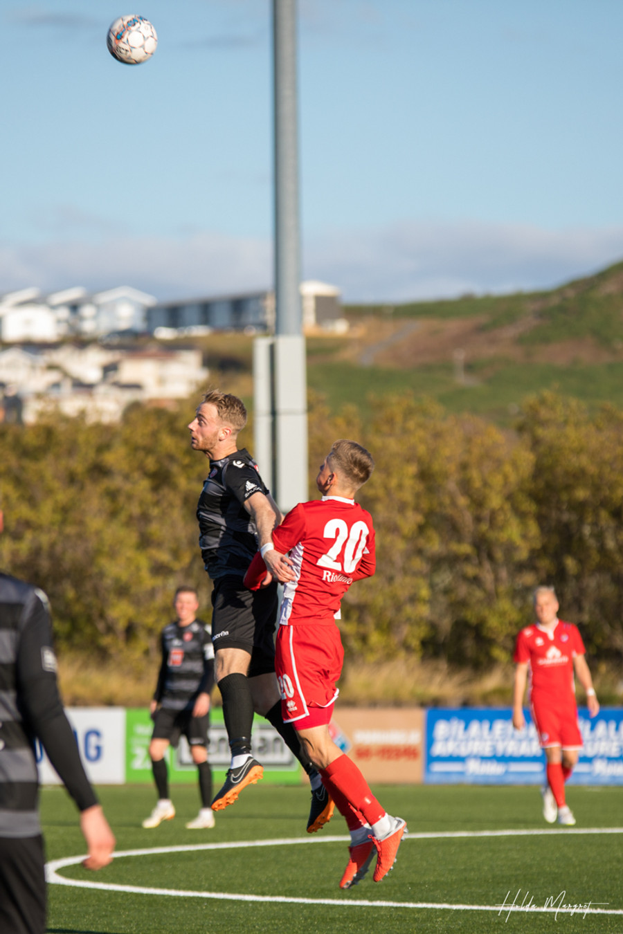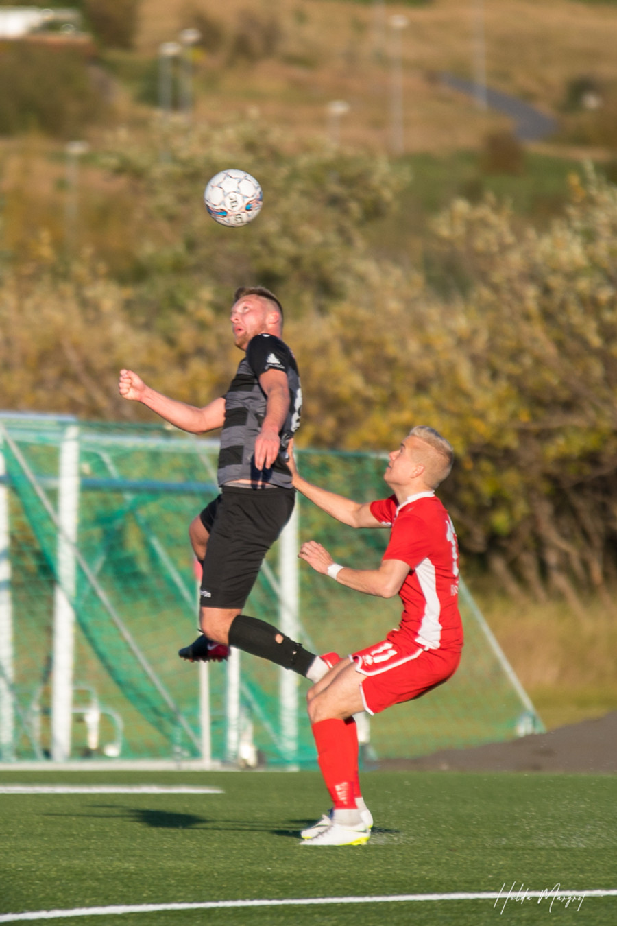 Boltinn barst á fjæstöng þar sem Arnar Aðalgeirs gerði mjög vel í að koma boltanum á Elton sem var aleinn í teignum, fast niðri í hægra hornið, óverjandi fyrir Arnar