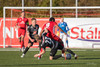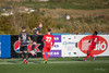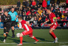 Darraðadans í teignum, Haukarnir henda sér fyrir skot HK-inga, endar með skoti yfir markið.